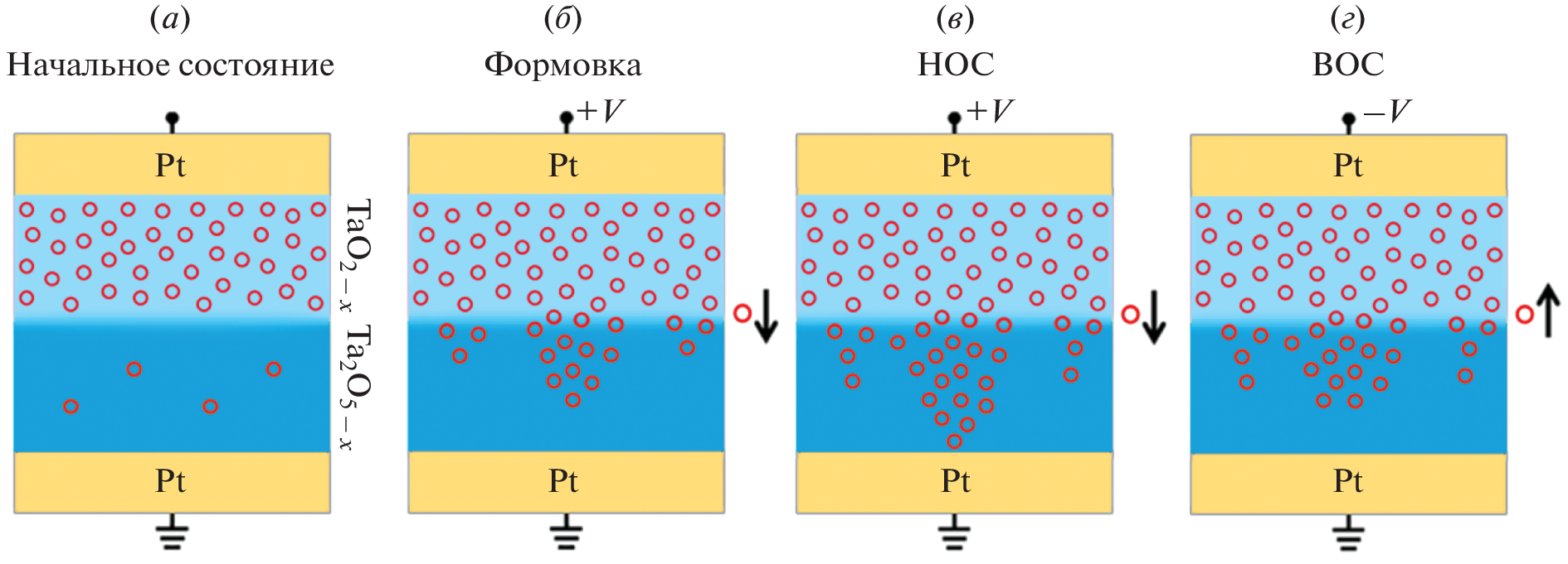 - Kurnia F., Liu C., Jung C.U. The evolution of conducting filaments in forming-free resistive switching Pt/TaOx/Pt structures // Appl. Phys. Lett. 2013. V. 102. № 15. P. 152902.