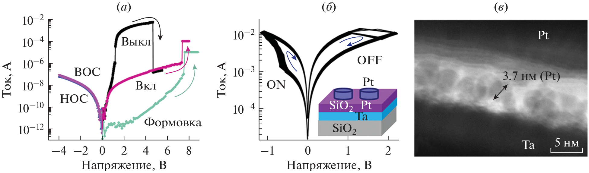 - Yang Y.C., Chen C., Zeng F. Multilevel resistance switching in Cu/TaOx/Pt structures induced by a coupled mechanism // J. Appl. Phys. 2010. V. 107. № 9. P. 093701.