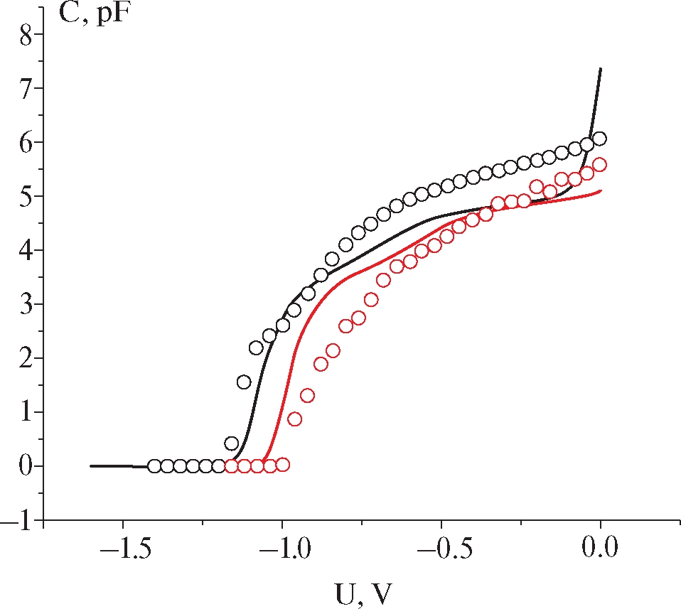 На втором этапе работы проводилось моделирование энергетического спектра и ВФХ исследуемой структуры. Результаты расчетов ВФХ сравнивались с экспериментально полученными данными. Схема расчета основана на численном решении стационарного одноэлектронного уравнения Шрёдингера, согласованного с уравнением Пуассона: