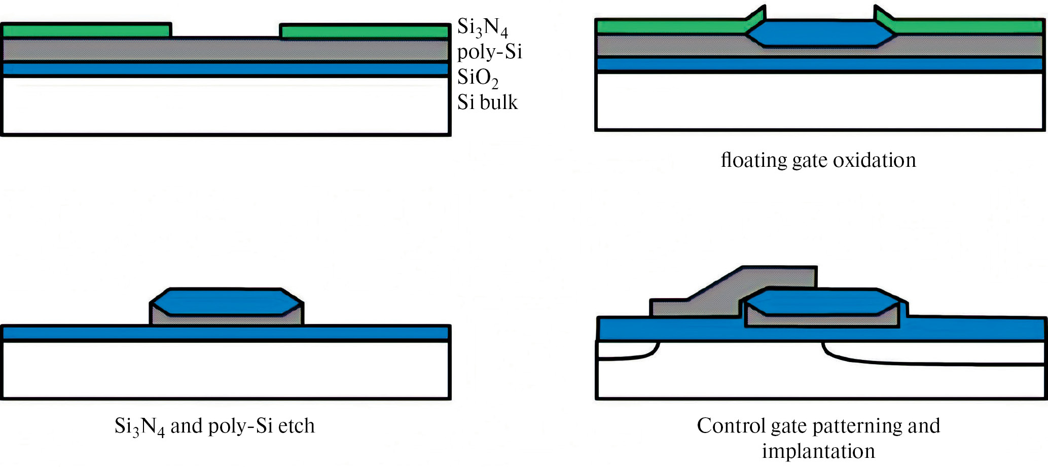 Рис. 2. Основные этапы формирования ЯП SuperFlash 1-го поколения с применением LOCOS-процесса [13].