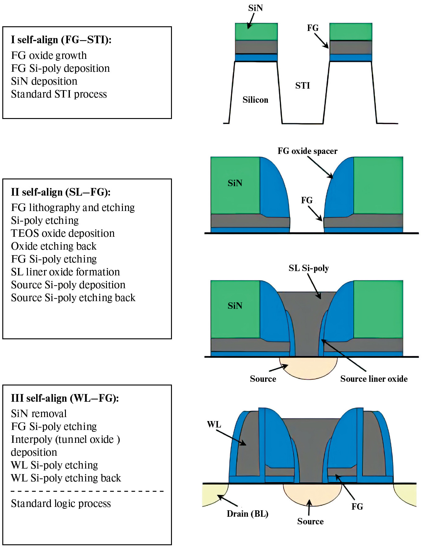 I процесс самосовмещения (STI—FG):