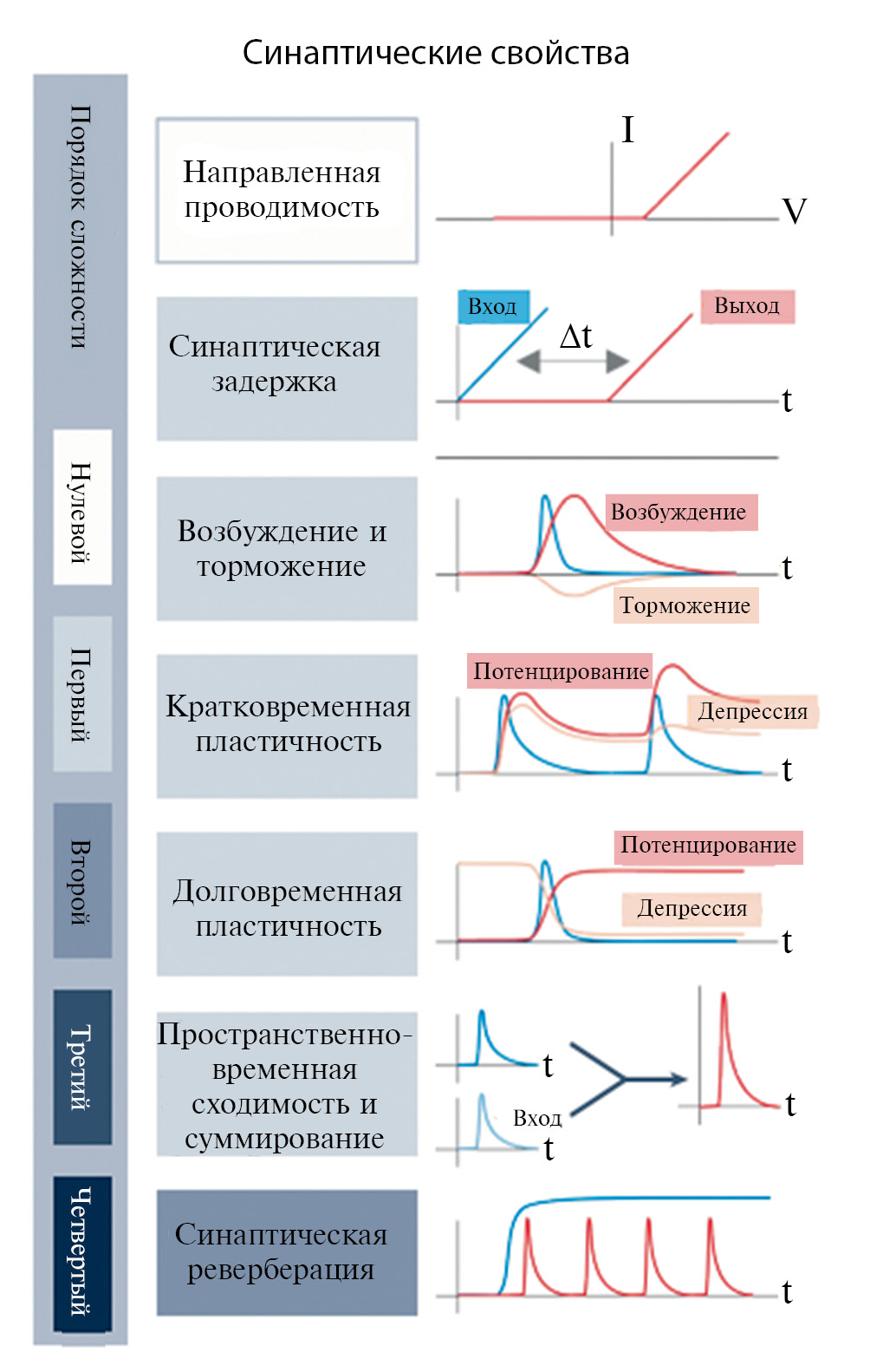 Рис. 1. Примеры синаптического поведения, требующие различных порядков сложности.