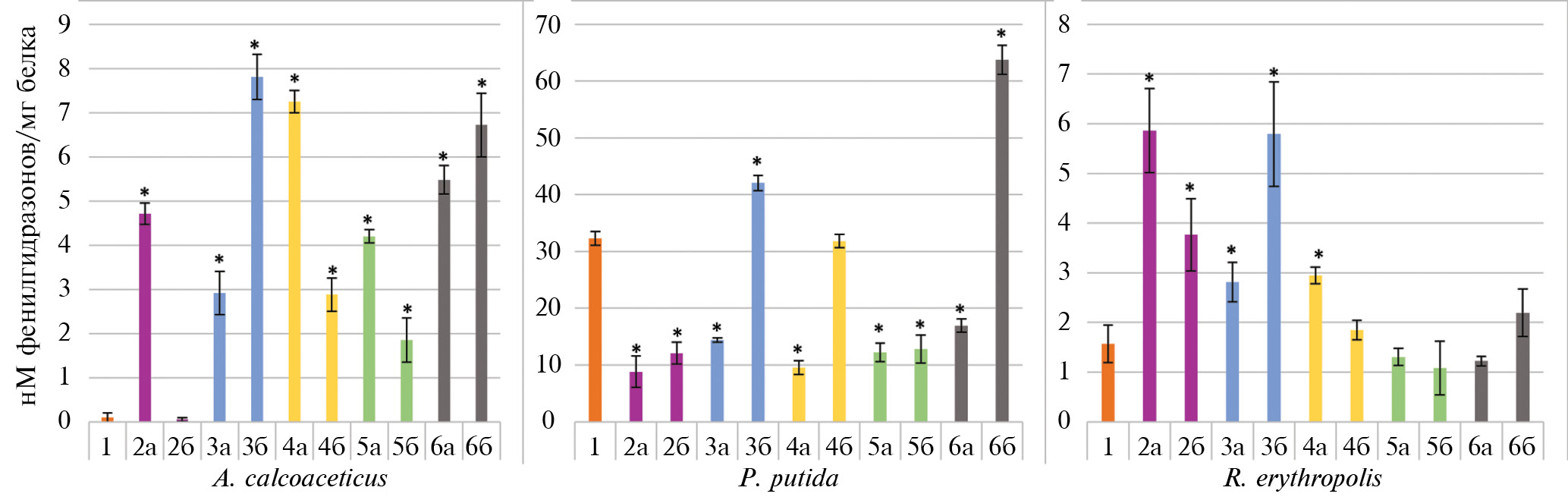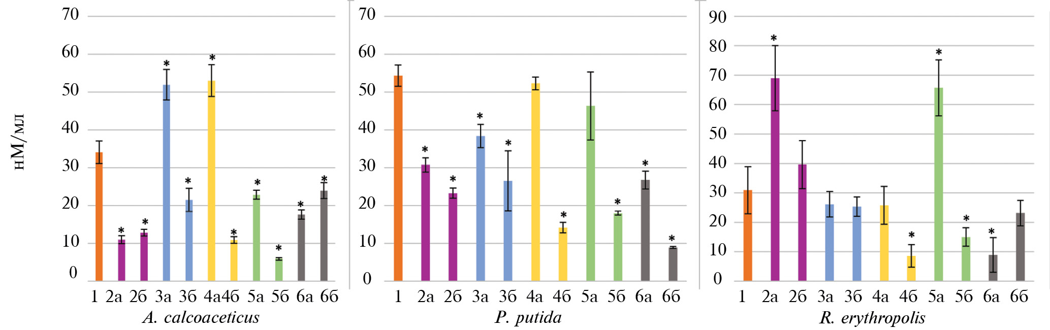 A. сalcoaceticus | P. putida | R. erythropolis | |