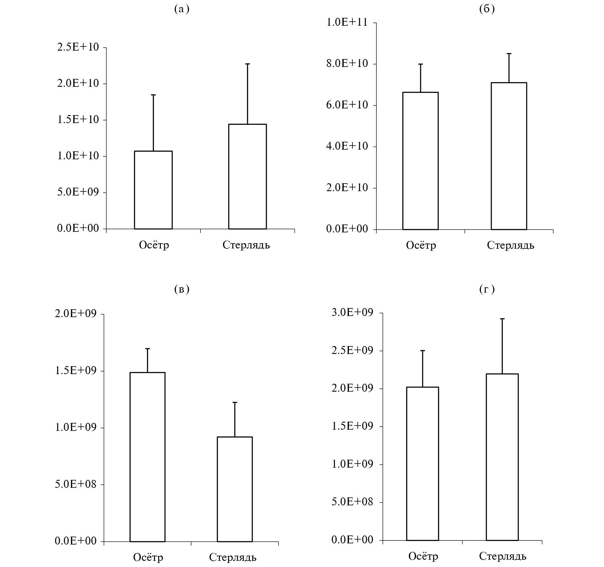 сибирский осетр (n = 5) | стерлядь (n = 5) | ||