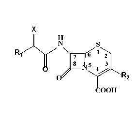 Цефалоспорин (β-лактамная и ацильная части) | X | –R1 | –R2 | |