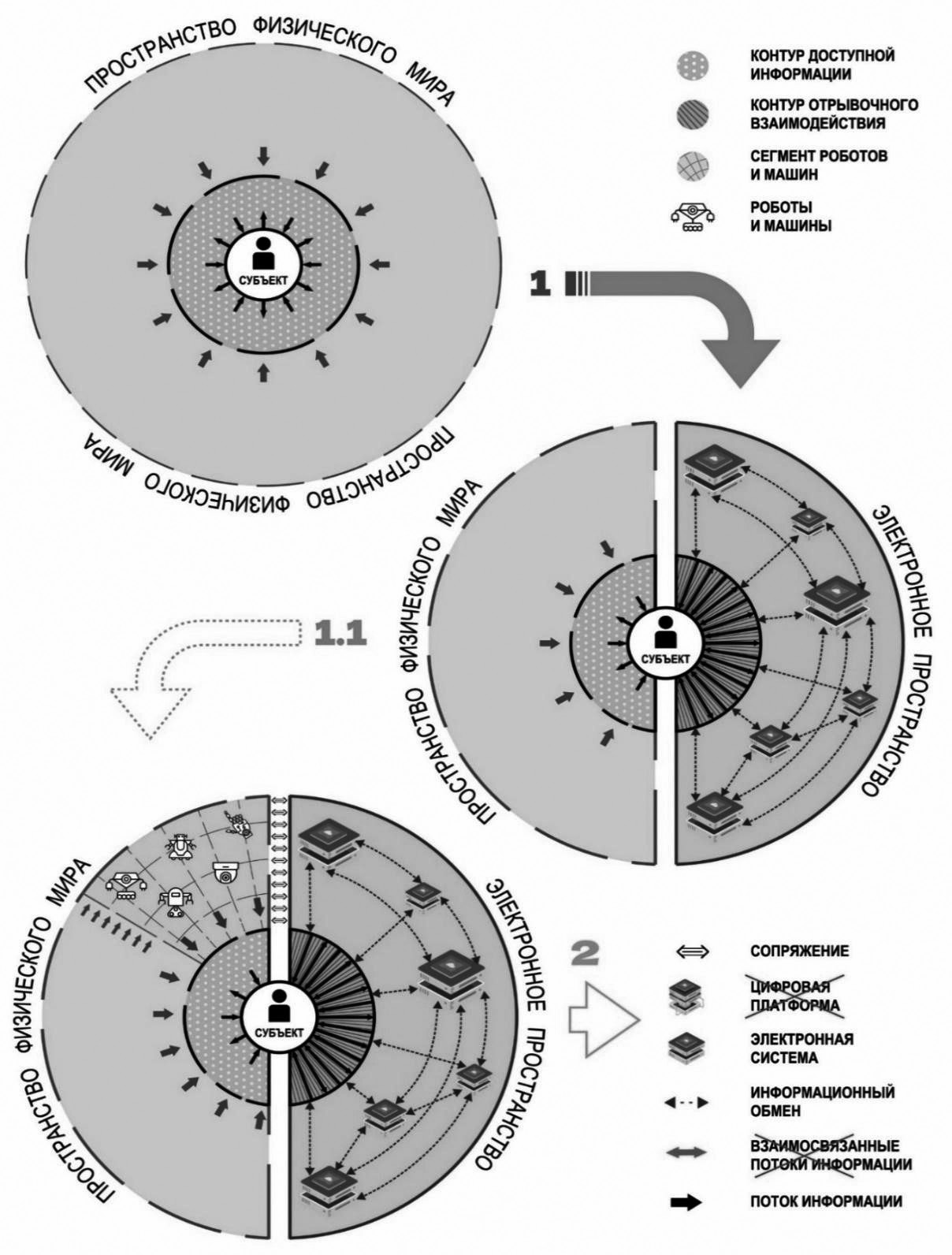 Рисунок 1. Информационно-коммуникационное пространство: переход от физического к электронному взаимодействию