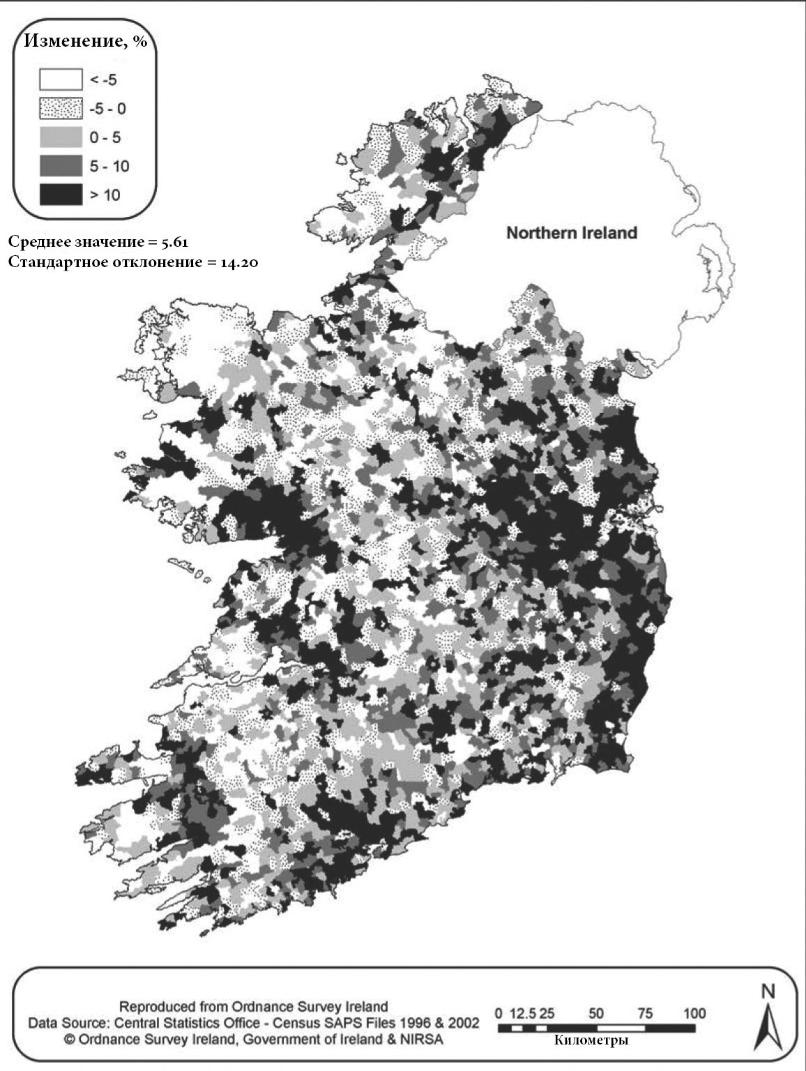 Рис. 1. Является ли это изображение картой? Изменение численности населения в Ирландии, 1996–2002.