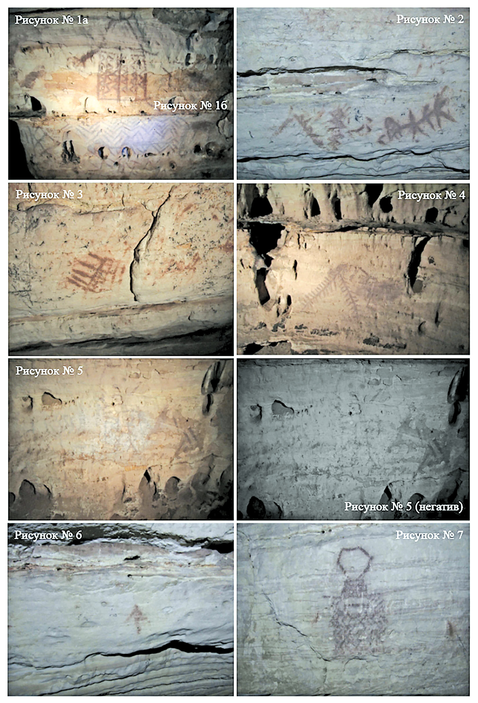 Наскальные рисунки в сакральной пещере в Серро-Аси можно распределить по семи изобразительным композициям.