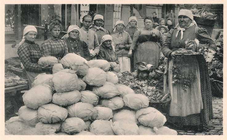 Рис. 1. Торговки овощами на рынке Грюнер Маркт в г. Бамберге. Открытка 1902 г.