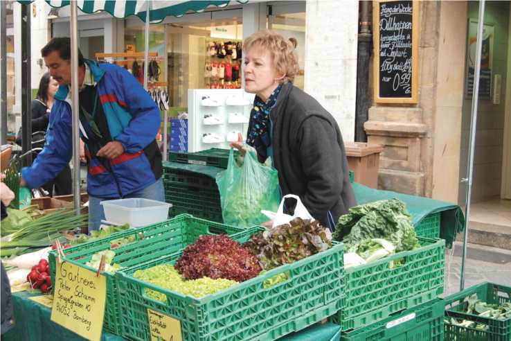 Сегодня тенденция в Германии такова, что уменьшается количество семей (в том числе с детьми), в которых сохраняется домашнее приготовление пищи, включающее полный цикл обработки продуктов. Работающие и студенческие пары обедают вне дома – в столовых и кафетериях, а на завтрак и ужин предпочитают блюда, которые не нужно готовить и в которых не используются сырые продукты – как раз то, что продается на рынках (Мартынова, Фаис-Леутская 2020: 251–252). Поэтому успешность базаров в сегодняшней Германии зависит от многих факторов: от месторасположения, от структуры населения окружающих кварталов, от достатка людей, стиля их жизни и потребления, от транспортной доступности и наличия парковочных мест, от предлагаемого ассортимента. Маркетологи в Германии по заказу торговых палат федеральных земель проводят регулярные исследования рынков, отслеживая уровень заинтересованности покупателей в таких торговых структурах, а также покупательские тренды (Hübsch 2011).