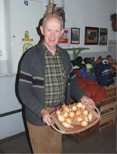 Рис. 4. Г. Демут продает грушевидный бамбергский лук. Бамберг, ул. Миттельштрассе. 2010 г. Фото автора