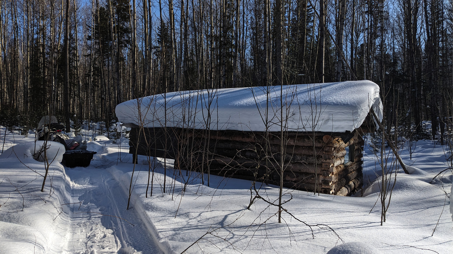 Единственное, что я могла сделать, – попросить знакомого проводника подвезти меня к месту старта. Оставив мужчин пить кофе и разговаривать, я отправилась в другую комнату надевать комбинезон и утепляться; требовалось время, чтобы меня представили охотнику так, как это положено, и чтобы было ясно, “от кого” я приехала. В дороге мы делали несколько остановок: чтобы проверить ловушки с соболями (сезон официальной охоты как раз закрывался), чтобы чай попить в переходно́й избушке (см. Рис. 1) и просто по разным нуждам. Спрятаться за дерево было невозможно, приходилось деликатно отворачиваться и созерцать рассвет. Ночью же, когда осины трещали от 30-градусного мороза и рядом завывали волки, я, выходя из избушки одна, даже сетовала на необходимость дистанции и разделения мужского и женского: свет фонарика был слабым утешением посреди тайги.
