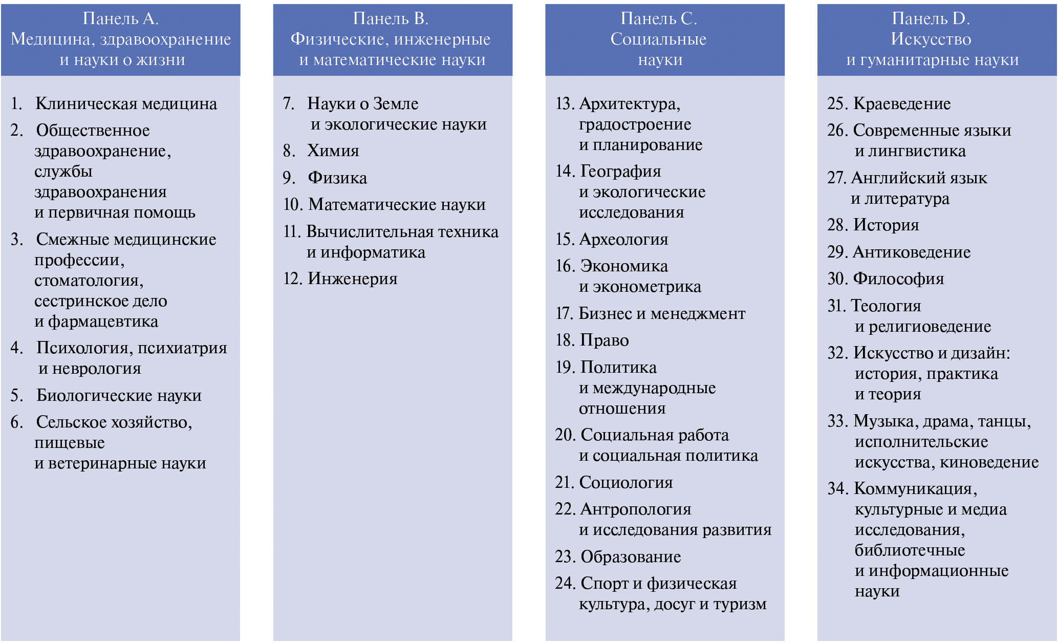 Рис. 1. Основные панели и экспертные группы (UoA) в REF 2021