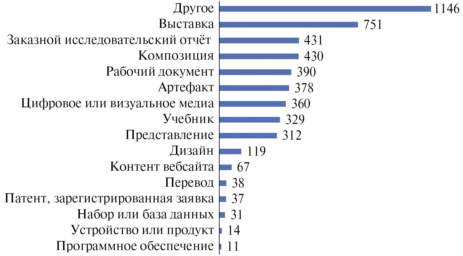 Наиболее традиционный объект экспертной оценки — результаты, в качестве которых обычно рассматривают научные публикации. Однако, на наш взгляд, ограничивать формы и виды результатов только публикациями не следует; необходимо обеспечить возможность представлять также аналитические отчёты, изобретения, программы и базы данных, информационные системы и веб-сайты, а для вузов культуры актуальными результатами могут быть театральные постановки. Адекватно оценить все результаты организации за длительный период вряд ли можно, поэтому оценке необходимо подвергать только лучшие достижения, отобранные самими исследовательскими коллективами. Количество таких результатов можно ограничить как сверху, чтобы обеспечить выполнимость оценки, так и снизу, чтобы был представлен вклад всех членов научного коллектива. Подобные ограничения могут быть привязаны к списочному составу исследователей, чтобы учитывать размеры коллективов.