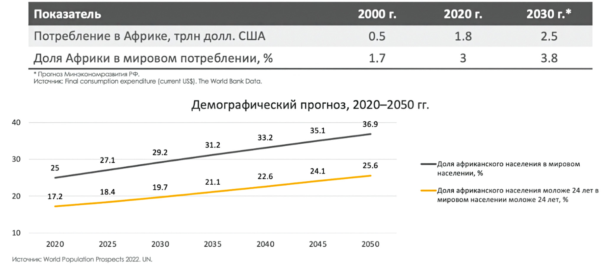 Эти идеи легли в основу Стратегии развития сотрудничества с Африкой, принятой Правительством РФ в начале 2024 г. и разработанной с привлечением широкого круга экспертов, в первую очередь из Института Африки РАН, а также из других институтов Российской академии наук. В соответствии со стратегией Африка, ВВП которой увеличится с 2022 по 2030 г. по самым скромным оценкам в 1.6 раза (прогноз МВФ), а доля африканцев в мировом населении составит в 2030 г. около 30% и достигнет показателя в 1.7 млрд, является весьма перспективным партнёром России (рис. 1, 2).