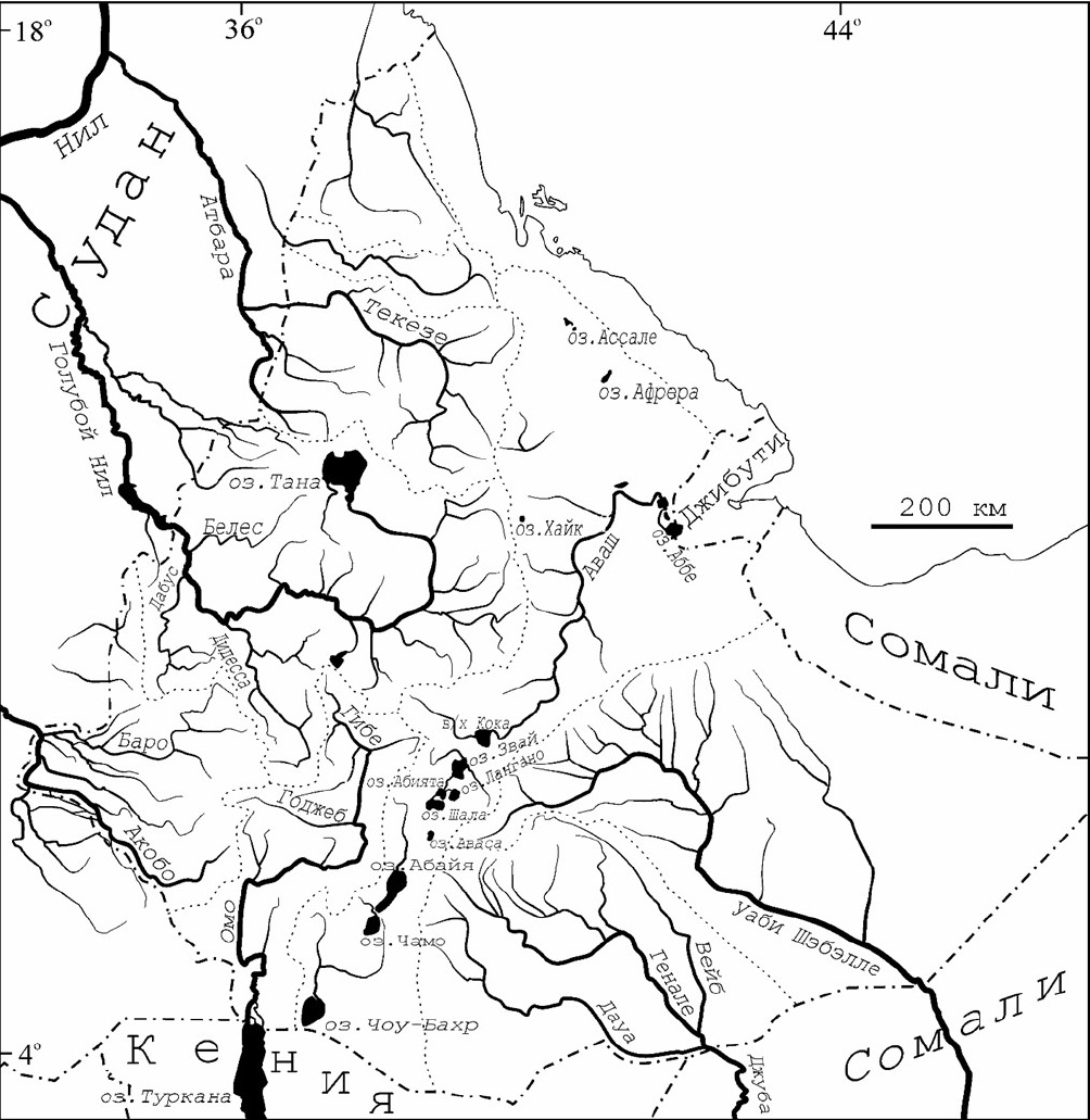 Рис. 1. Гидрографическая сеть Абиссинского нагорья