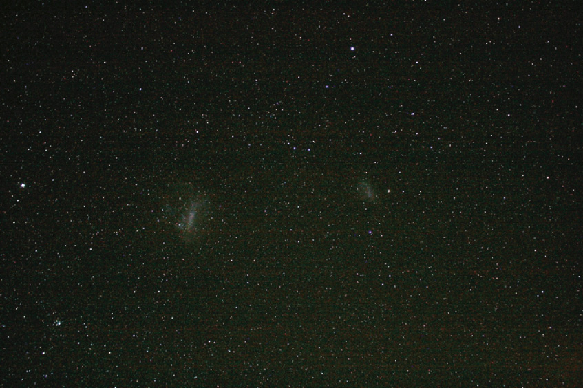 Рис. 1. Изображение участка южного неба, полученное с территории Южноафриканской астрономической обсерватории (Сазерленд) во время визита сотрудников ИКИ РАН в ЮАР. Хорошо видны Большое и Малое Магеллановы облака Фото А. Вольнова, ИКИ РАН