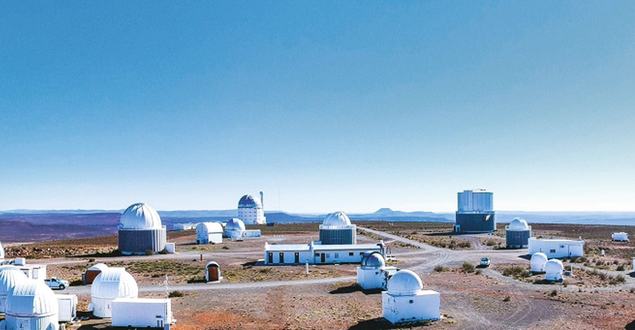 ЮАР располагает развитой инфраструктурой для проведения наблюдений в оптическом и радиодиапазонах. С 1972 г. функционирует Южноафриканская астрономическая обсерватория (ЮААО) – South African Astronomical Observatory (SAAO) [2], размещённая на плато в Сазерленде и обладающая к настоящему времени более чем десятком оптических телескопов, в том числе одним из самых больших в мире, 11-метровым SALT (South African Large Telescope) [3]. На площадке обсерватории размещены также телескопы класса 1.9 и 1.0 м (рис. 2).