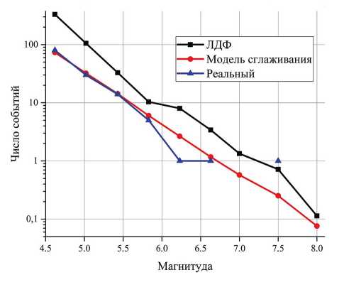 Автор выражает признательность С.А. Перетокину за помощь в составлении синтетического каталога землетрясений по ЛДФ-модели.