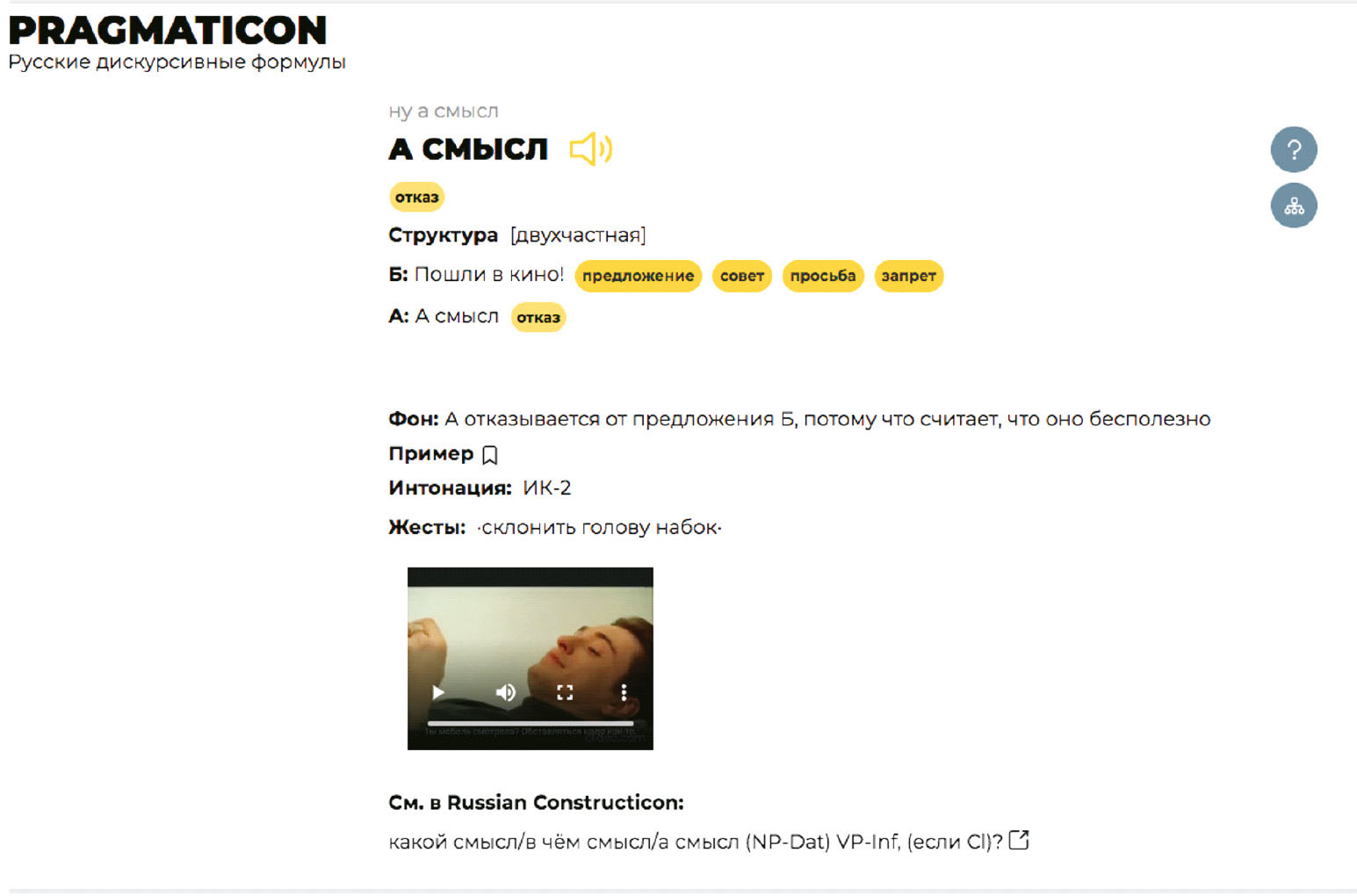 Рис. 4. Описание дискурсивной формулы в учебном ресурсе “Прагматикон”