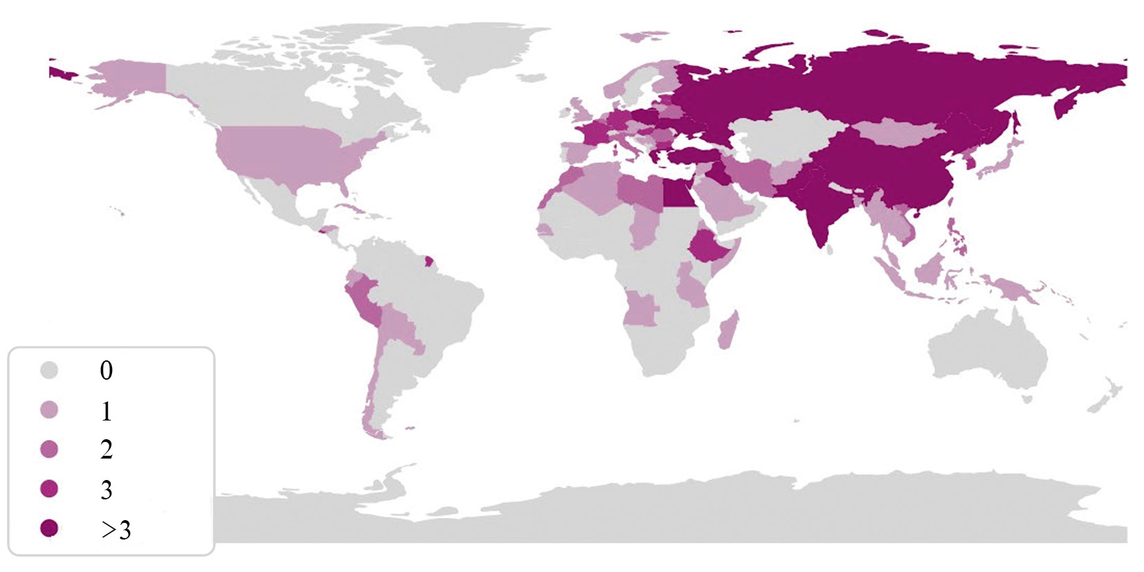 Рис. 1. География военных конфликтов за период 1870–2022 гг. [1]
