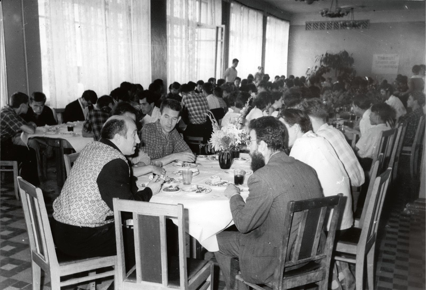 3. Dinner with participants of the First Summer Physics and Mathematics School. 1962. From left to right: E.P. Kruglyakov, G.I. Budker, A.A. Bers