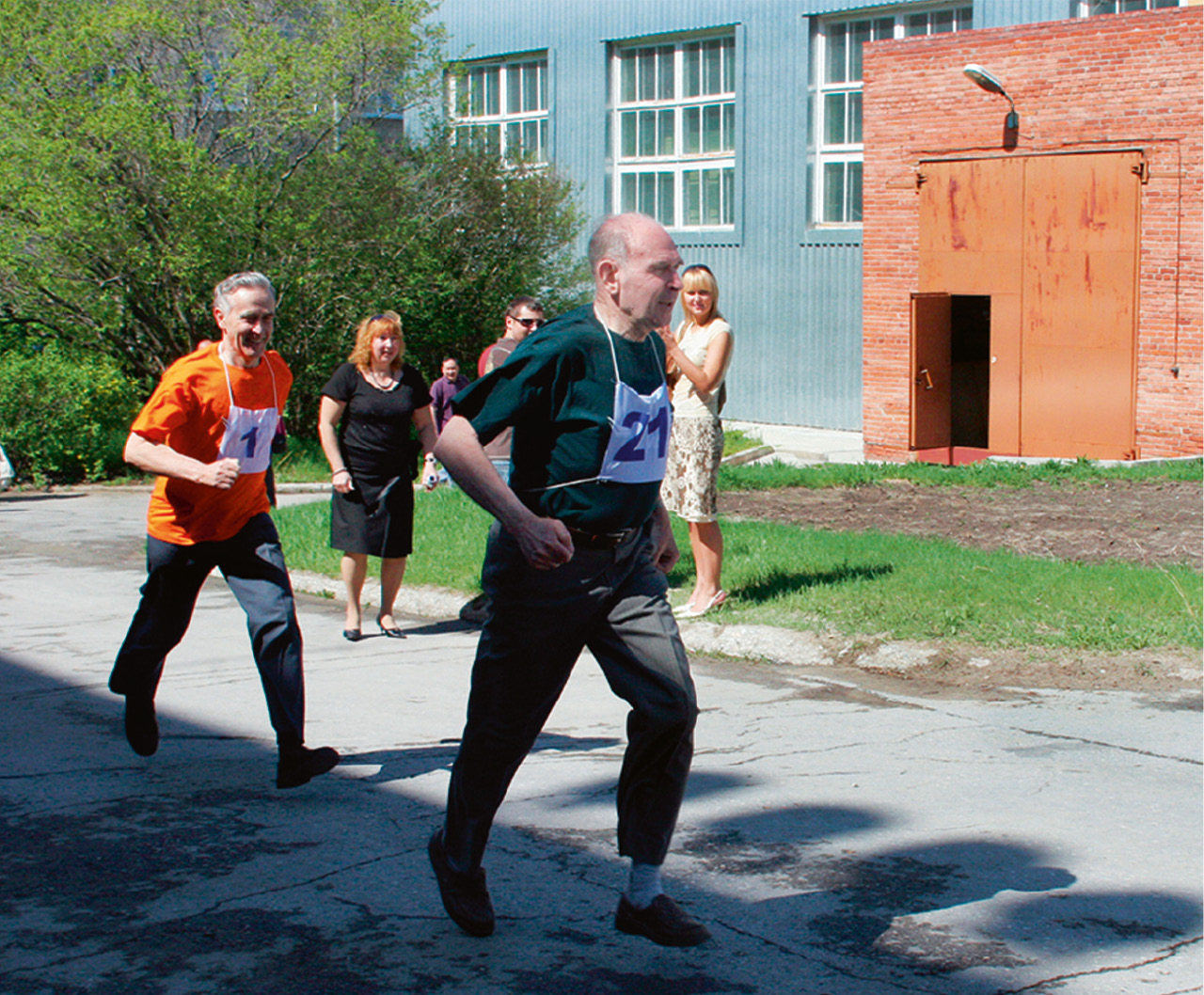 Внимание многих привлёк и ещё один случай. В 2008 г. праздновали 50-летний юбилей ИЯФ, среди прочих мероприятий устроили товарищескую эстафету научных школ академиков А.Н. Скринского и Э.П. Круглякова, в которой на первом этапе бежали сами академики. Скринский, известный в академгородке лыжник, занимался спортом. Временами я встречал его на лыжне, но всегда отставал, не мог долго держаться за ним. Так вот, на коротком, почти спринтерском этапе эстафеты 2008 г. Эдуард Павлович даже немного обогнал Александра Николаевича, и команда его школы пришла первой.