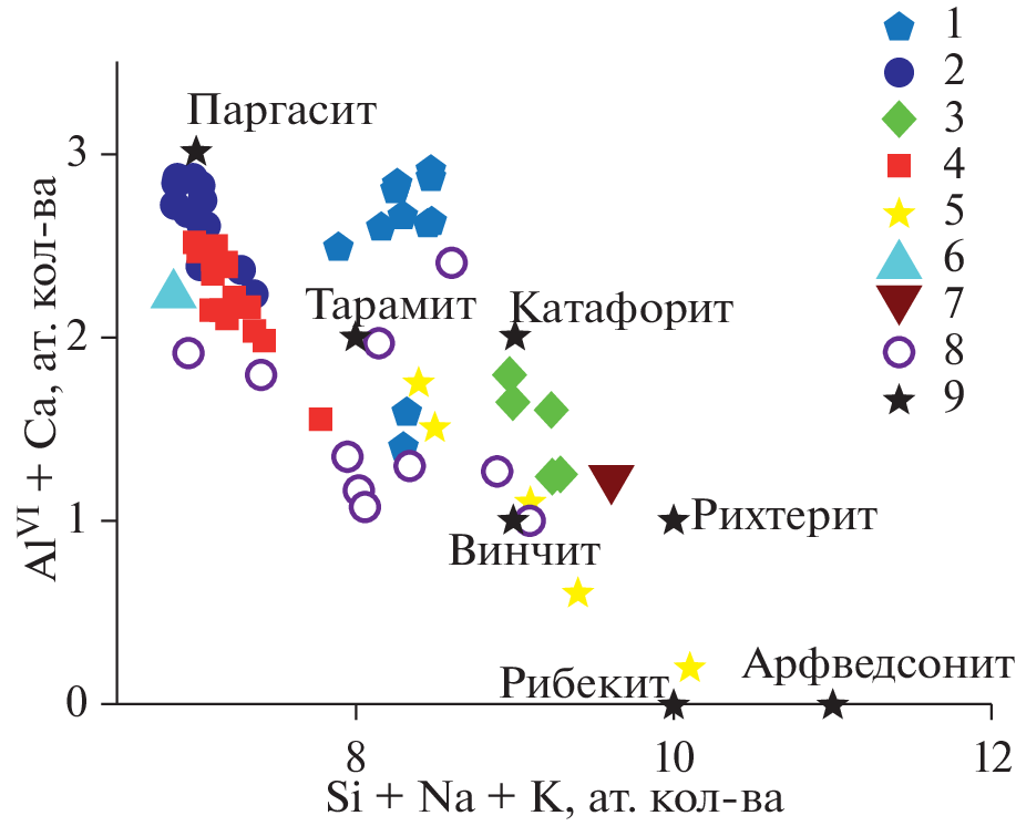 - Schumacher J.C. The estimation of ferric iron in electron microprobe analysis of amphiboles // Eur. J. Mineral. 1997. V. 9. P. 643–651.