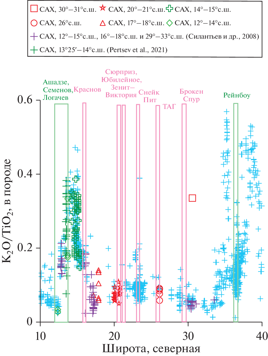 - Bonatti E., Peyve A., Kepezhinskas P. et al. Upper mantle heterogeneity below Mid-Atlantic Ridge 0°–15° N // J. Geophys. Res. 1992. V. 97. B4. P. 4461–4476.