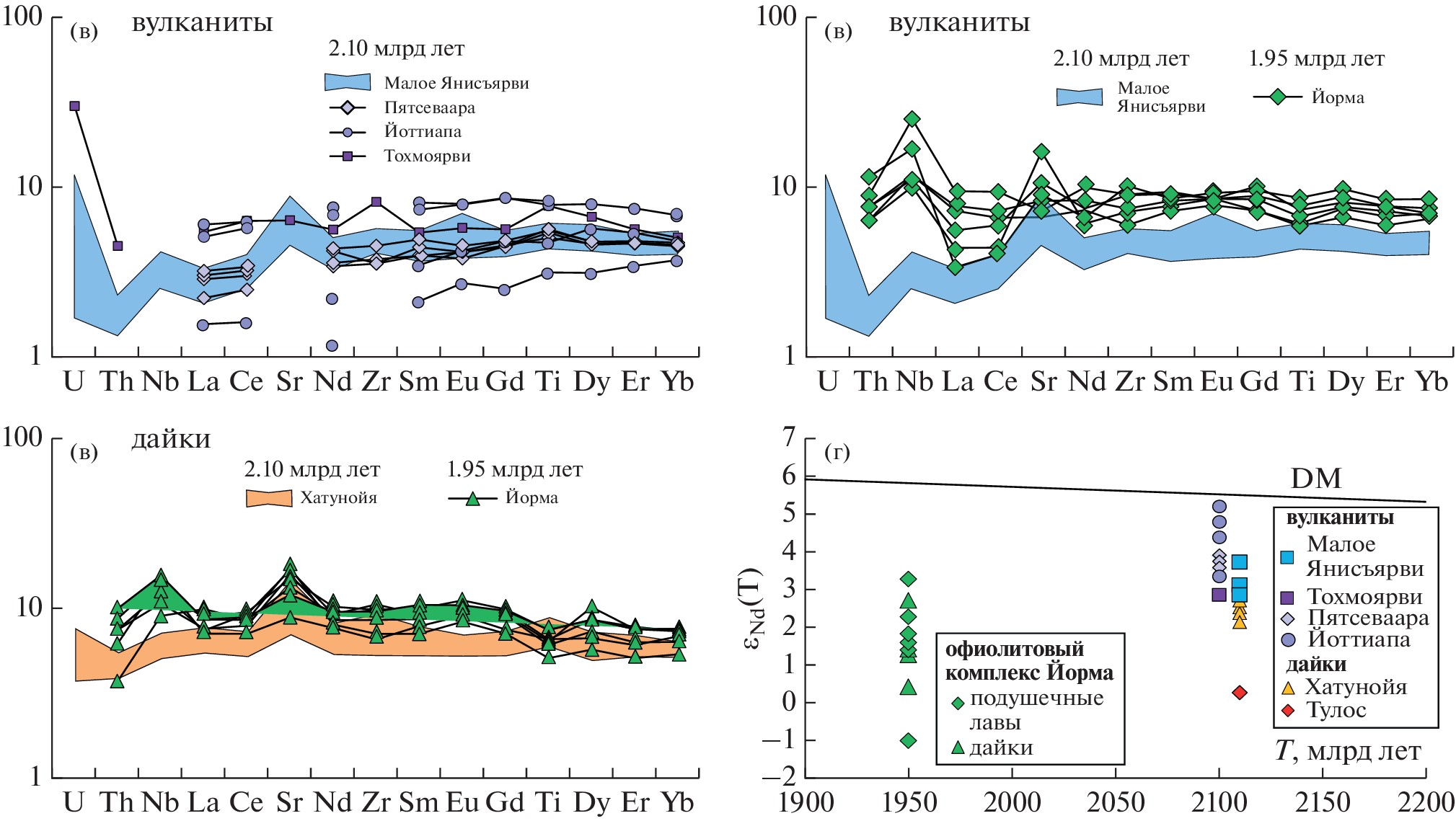 - Nykänen V.M., Vuollo J.I., Liipo J.P., Piirainen T.A. Transitional (2.1 Ga) Fe-tholeiitic-tholeiitic magmatism in the Fennoscandian Shield signifying lithospheric thinning during Palaeoproterozoic extensional tectonics // Precambr. Res. 1994. V. 70. № 1–2. P. 45–65.