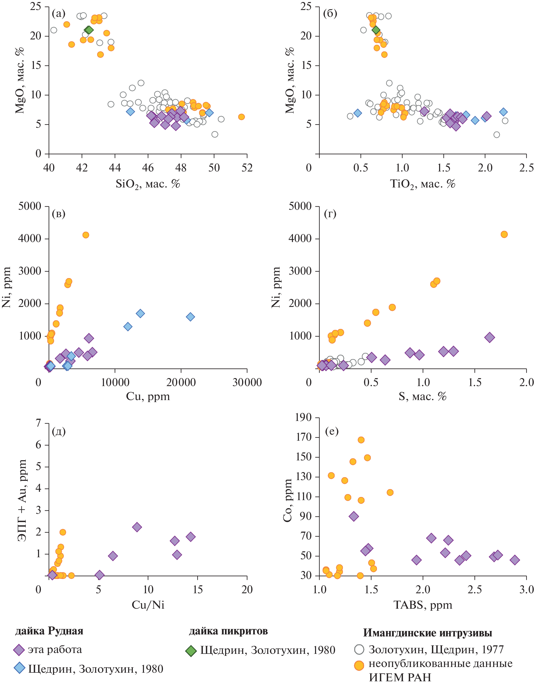 - Sinyakova E., Kosyakov V., Distler V., Karmanov N. Behavior of Pt, Pd, and Au during crystallization of Cu-rich magma-tic sulfide minerals // Canad. Mineral. 2016. V. 54. № 2. P. 491–509.