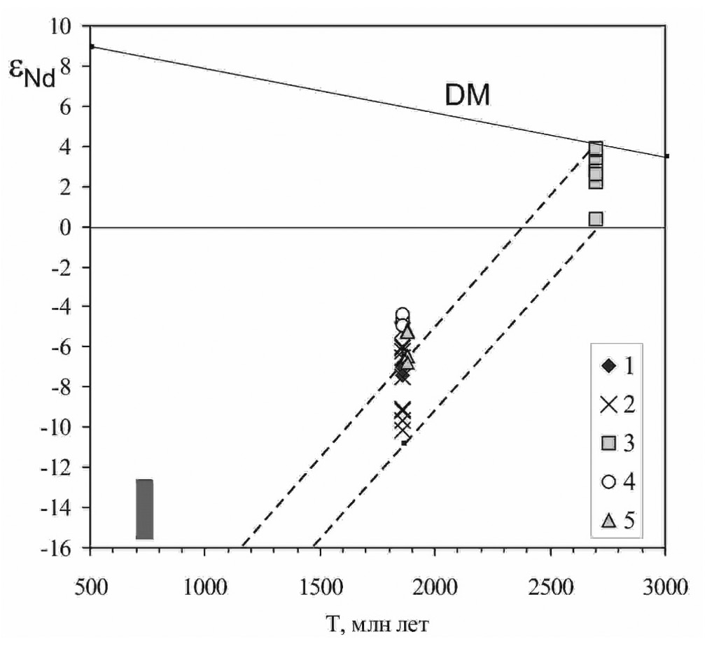 Примечание. Для расчета εNd(Т) принят возраст 1.86 млрд лет.