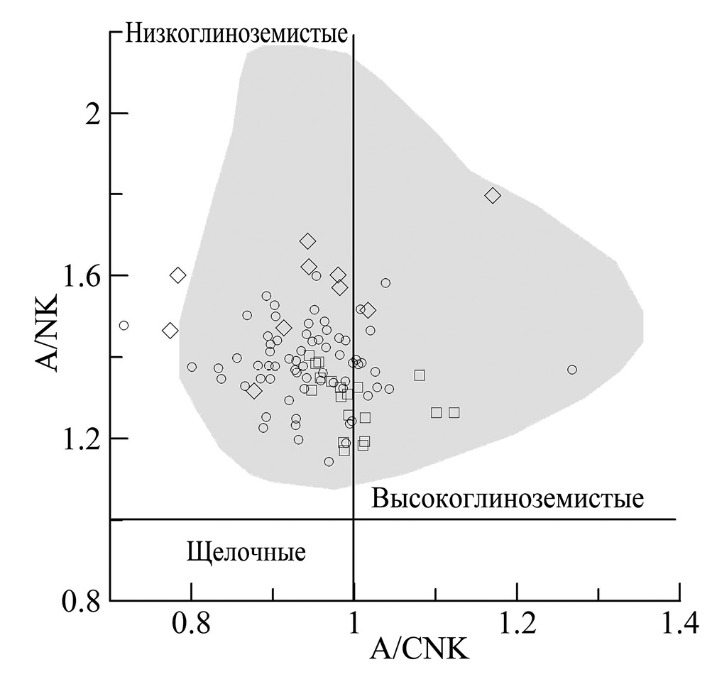 - Whalen J.B., Currie K.L., Chappell B.W. A-type granites: geochemical characteristics, discrimination and petrogenesis // Contrib. Mineral. Petrol. 1987. V. 95. P. 407–419.