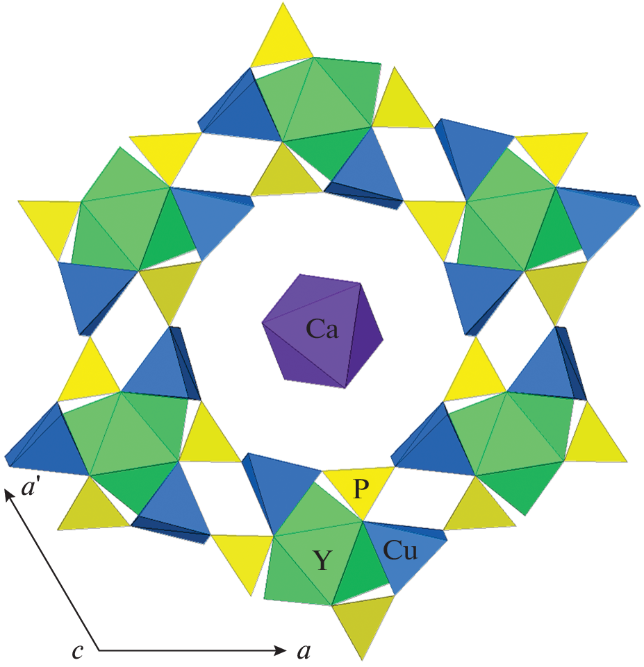 Petersite-(Y) was found in the oxidation zone of the Mednorudyanskoe deposit (Middle Urals). The mineral occurs as light blue acicular hexagonal crystals up to 0.5 mm long and up to 7 μm thick, usually combined in bunches. Associated minerals are malachite, chrysocolla, opal, and rancieite. This is the first find of a mixite-group phosphate mineral in Russia. The chemical composition of the studied petersite-(Y) (electron-microprobe data, H2O content is calculated by stoichiometry, wt %) is: CaO 1.48, CuO 52.65, Y2O3 7.34, La2O3 2.51, Nd2O3 1.01, Dy2O3 0.19, P2O5 23.05, As2O5 0.62, H2O 11.85, total 100.7. The empirical formula is (Y0.59Ca0.24La0.14Nd0.05Dy0.01)Σ1.03Cu6.04(P2.96As0.05)Σ3.01O12(OH)6·3H2O. The crystal structure of a mixite-type phosphate with species-defining REE was first studied on the single crystal extracted from this specimen, R1 = 2.5%. The mineral is hexagonal, space group P63/m, a = 13.2348(4), c = 5.8574(2) Å, V = 888.53(6) Å3, and Z = 2. In general, petersite-(Y) is isotypic to mixite-group arsenates, however, it has a crystal chemical feature earlier unknown for representatives of the mixite structure type: the presence of the octahedral [Ca(H2O)6]2+ clusters in wide channels. The powder X-ray diffraction pattern reliably indexed based on the crystal-structure data is first reported for a mixite-type phosphate.