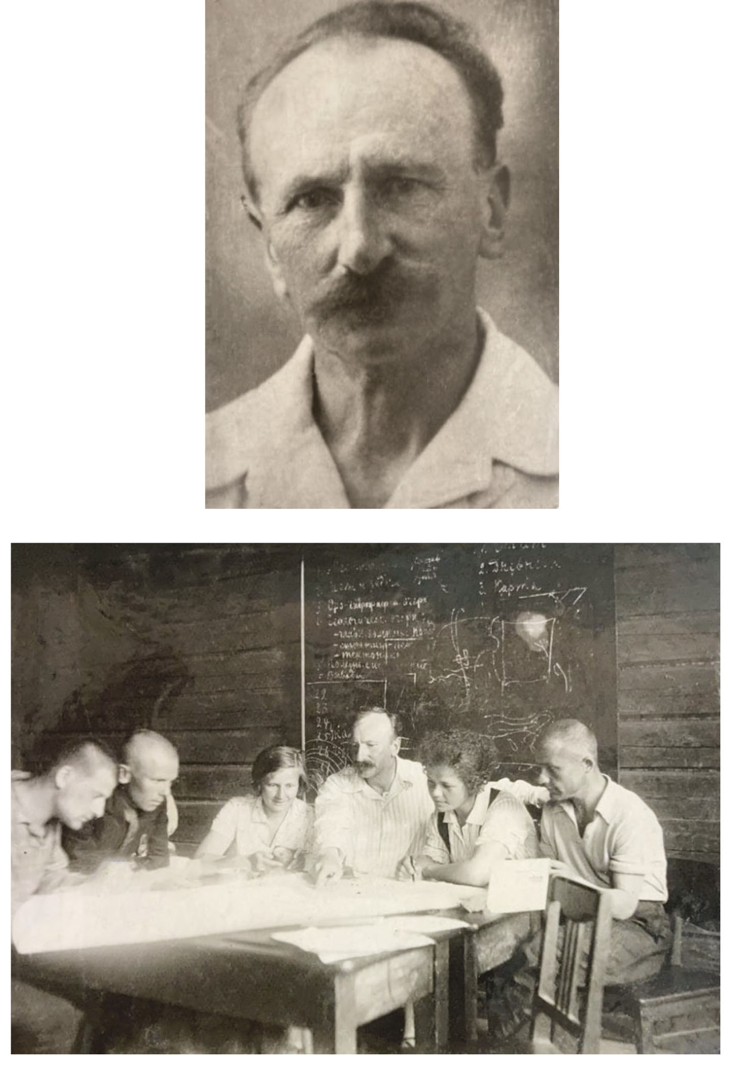 Горный институт расселен в Пятигорске; там живут В.Н. Зверев20, П.А. Грюше21 (рис. 7), Н.Н. Падуров22, Н.А. Елисеев23 (он не собирался умирать, как нам писали из Свердловска), Герман24, Гескин25и директор26 и, вероятно, еще кто-нибудь. У нас здесь были Грюше и Елисеев. Д.В. Никитин27 (рис ) умер по дороге, а здесь в больнице скончался от дистрофии и ее последствий Б.П. Асаткин28. Горный институт был очень озабочен начать занятия и искал себе подходящее помещение, но приезжавшее сюда начальство рекомендовало не начинать занятий до осени, когда, может быть, институт вернется домой, если же этого не будет, то они на зиму переедут в Орджоникидзе. Такое заявление начальство сделало всем другим учебным заведениям. На лето же студентов распределяют на работу по колхозам, куда уходит и часть профессоров, другая часть устраивается, как умеет (профессорам пока платят жалованье).