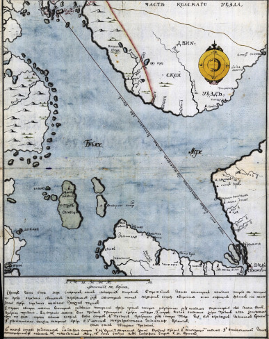 В легенде 2 к карте написано: «Чертеж Белого моря с лежащим на нем Медвежьим островом в Порьегубском заливе, на котором находилось на предь чего натуральное серебро и признаки свинцовых и серебряных руд, а в которых местах на том Медвежьем острову и в протчих окало лежащих местах его натуральное серебро и признаки находились означить по сему».