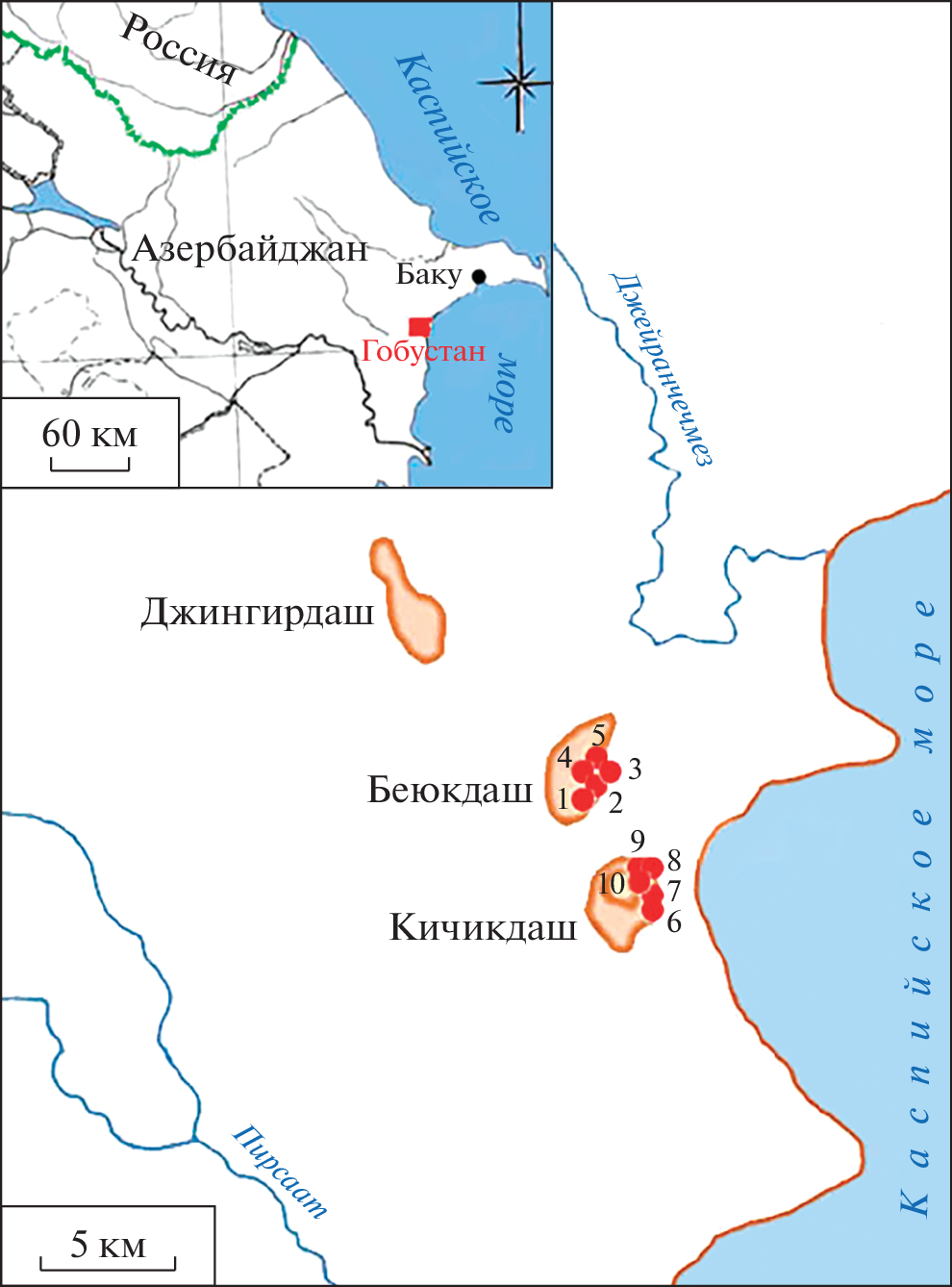 - Rustamov Dzh.N., 1984. Mesolithic site in Gobustan (Oküzlar-2). Kamennyy vek i eneolit v Azerbaydzhane [The Stone Age and Eneolithic in Azerbaijan]. M.M. Guseynov, ed. Baku: Azerbaydzhanskiy gosudarstvennyy universitet, pp. 40–52. (In Russ.)