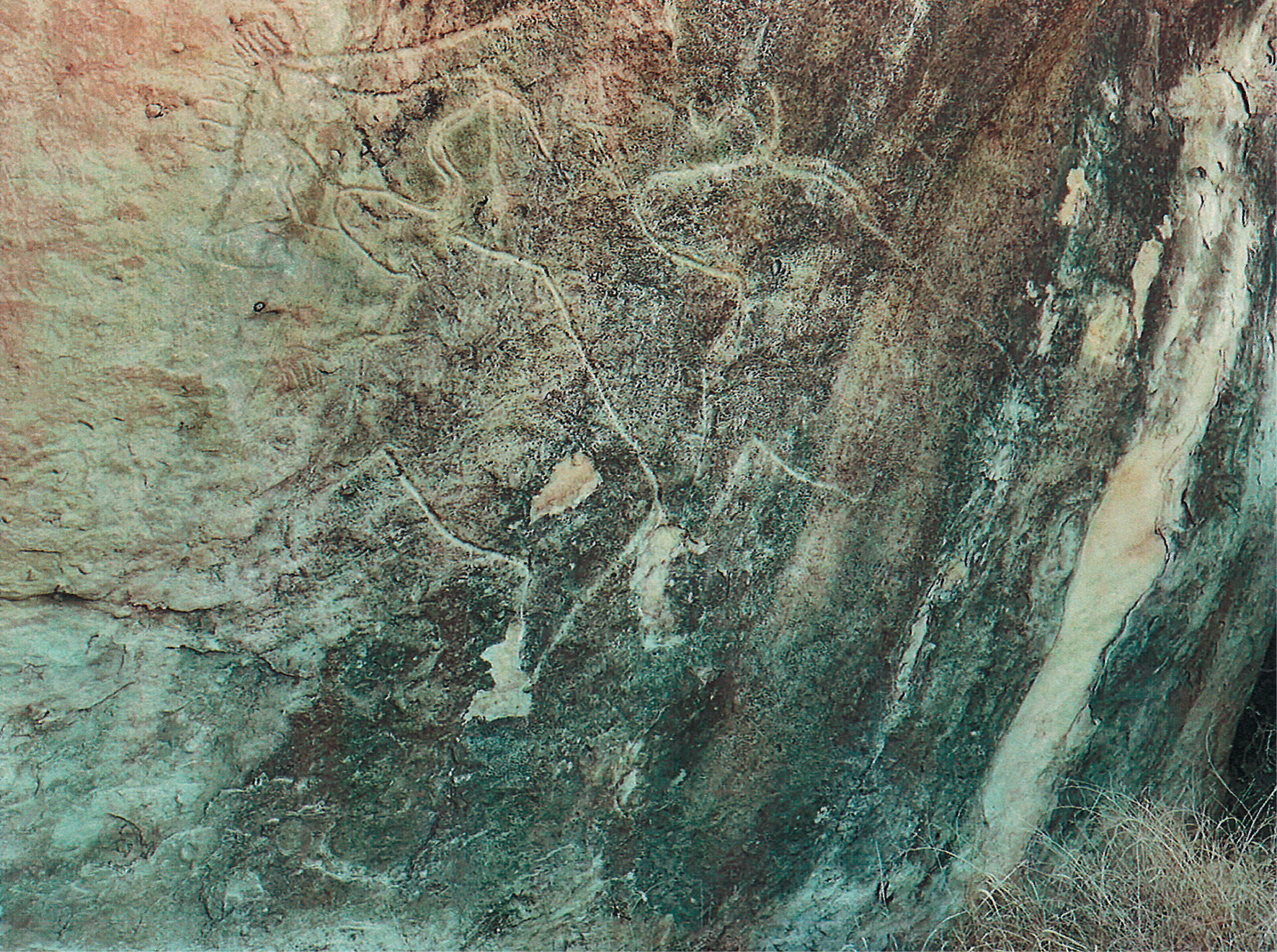 Fig. 3. Gobustan. The shelter of Oküzlar, stone 42 (after Jafarzadeh, 1973). “Renewed” images of prehistoric bulls. Photo by the author