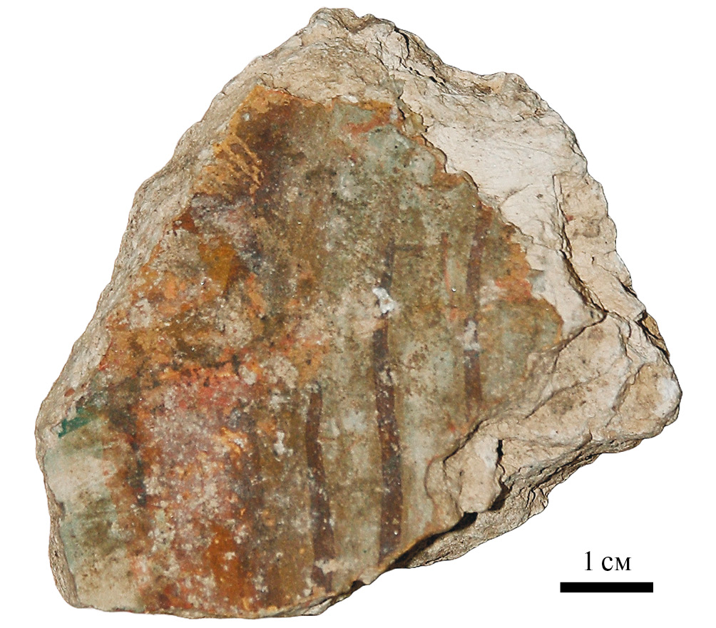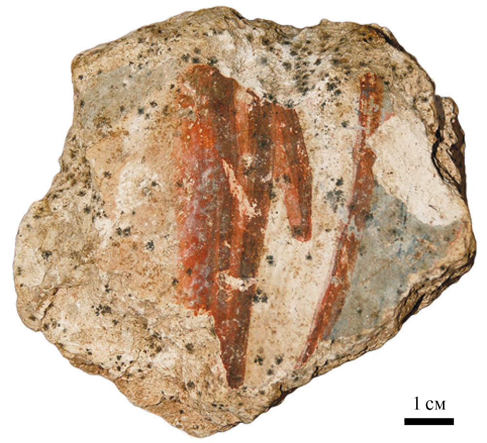 Они переданы в НГОМЗ, в мастерскую Новгородского кремля под руководством Т.А. Ромашкевич, где уже прошли расчистку и укрепление. В основном это массовый археологический материал, главным образом фоны. Мелкие фигуративные изображения, в том числе личного письма, а также орнаменты встречаются нечасто, их всего чуть больше десятка. Важно отметить, что благодаря консервации под полами 1184 г. на них не зафиксировано позднейших записей. К этим немногочисленным фресковым фрагментам, найденным в 2021–2023 гг., мы и обратимся (без указания точного места находки, это прерогатива археологов).