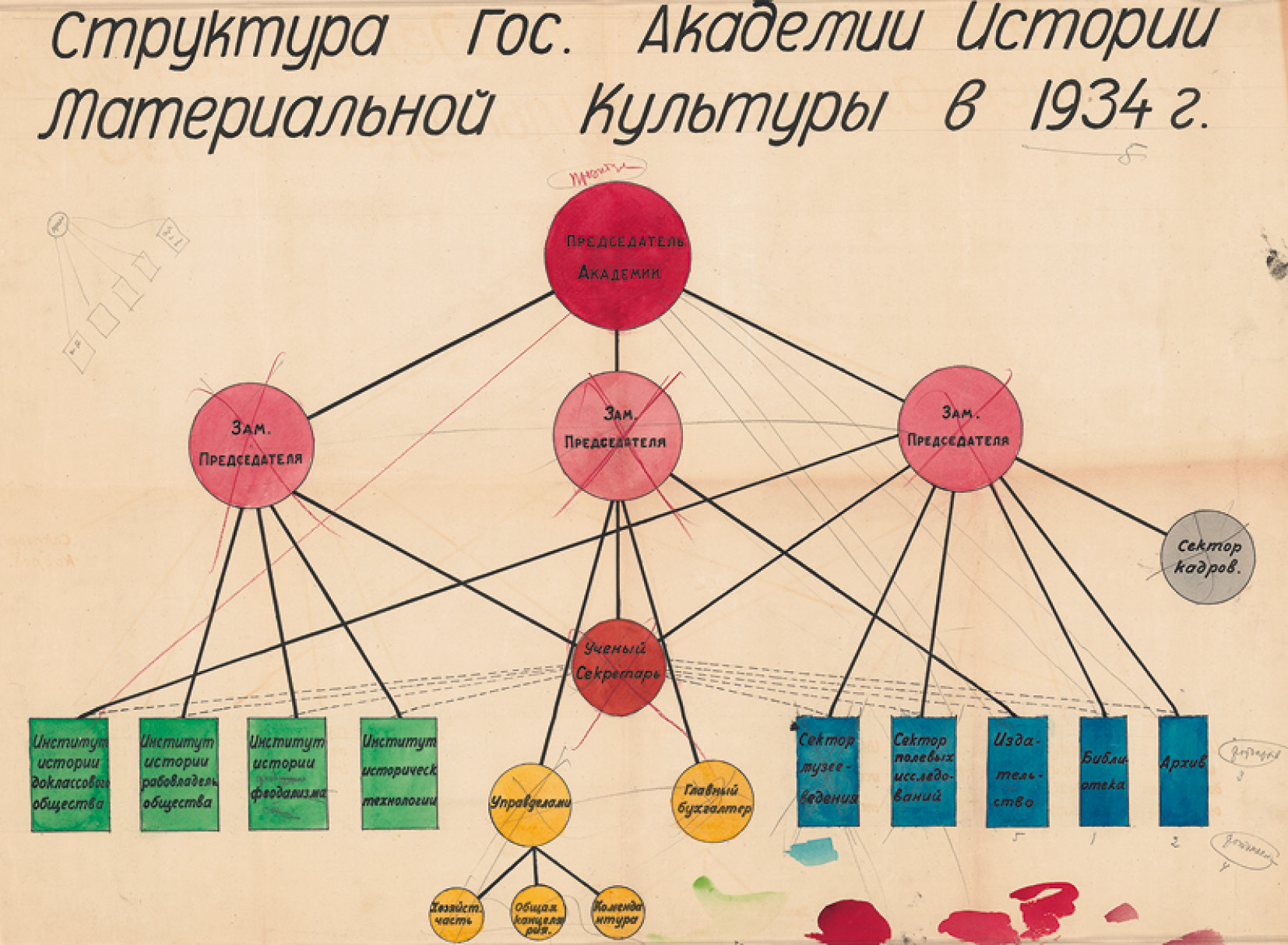 Fig. 5. Project of the new structure of GAIMK, 1934. Manuscript Dept. of the Archive of the Institute for the History of Material Culture RAS. F. 2 L. 1 1934 Case 259 P. 1