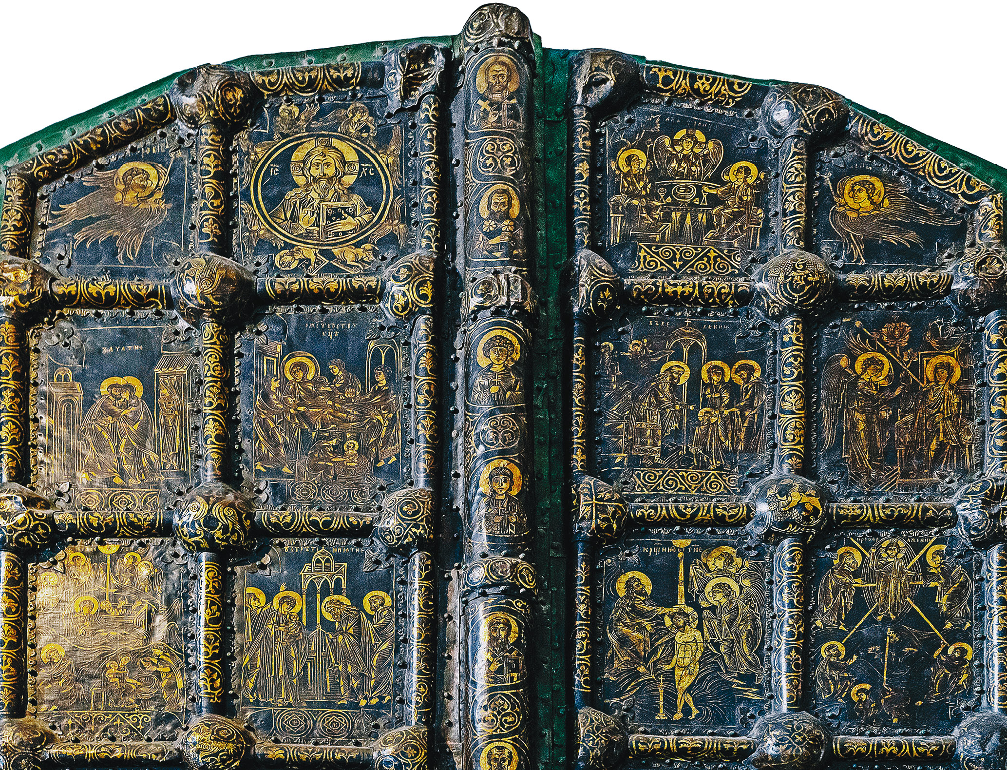 Fig. 1. Western doors of the Suzdal Cathedral, fragment, the upper tier on the sides shows six-winged angels as guards-gatekeepers (after Artyukh, 2024)