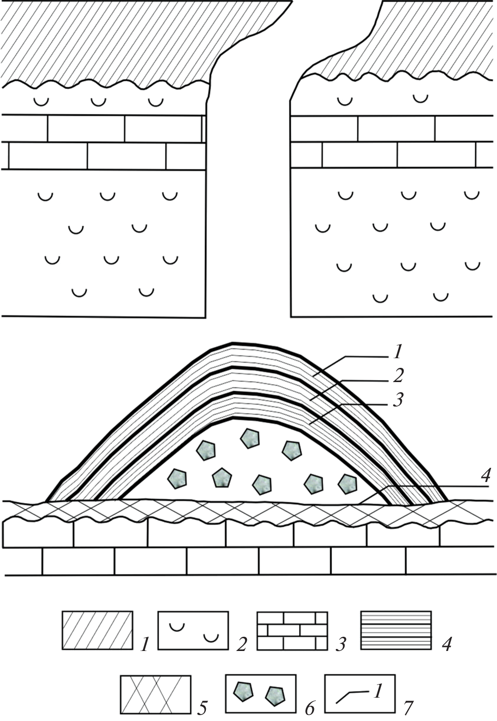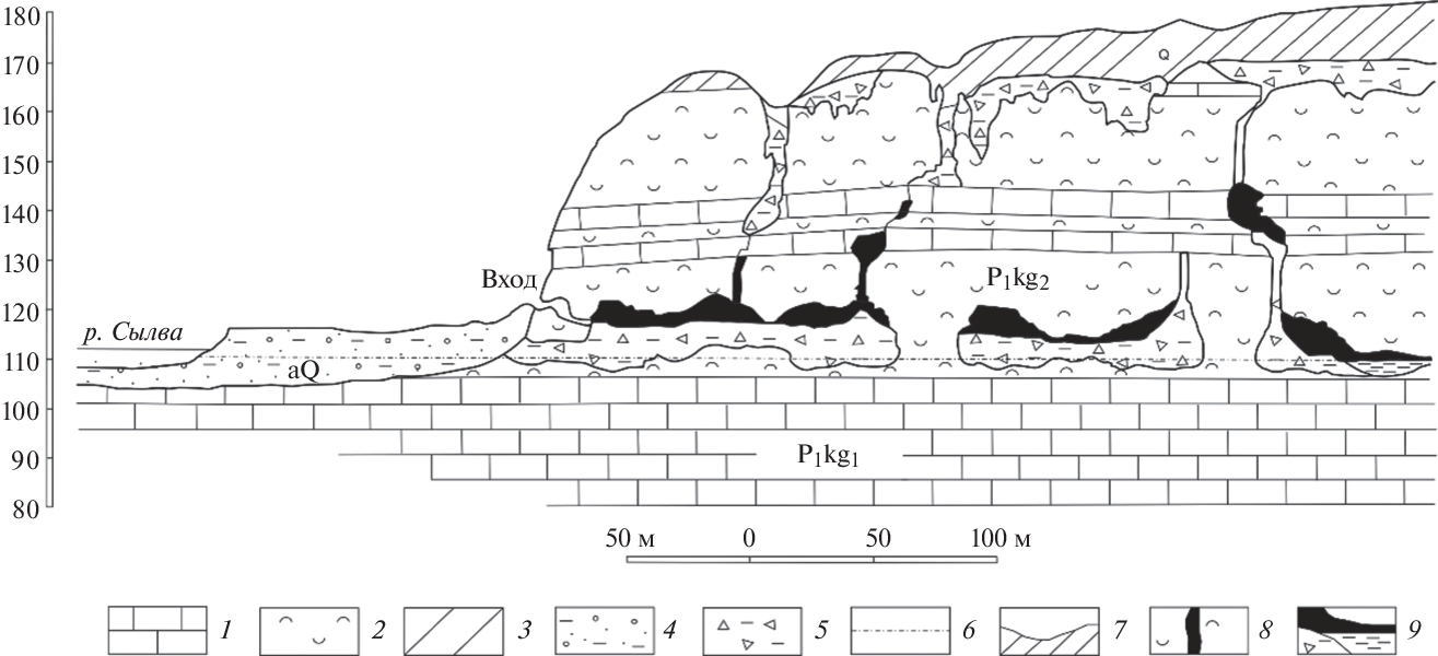 —The results of spectral analyses of infiltration deposits of a large karst system in carbonate-sulfate deposits are presented. The movement of loose material from the surface through deformation zones within an array with a capacity of 80–90 m leads to accumulations of gravel-clay deposits in the lower part of grottoes and galleries. The localization of deposits is confined to certain forms of underground karst relief – organ pipes: vertical structures up to 20–25 m high, free or filled with debris. Regularities in the distribution of individual oxides and elements are revealed, their values are compared with residual deposits, as well as matrix rocks. Infiltration waters entering the karst massif in the pre-paleogenic stage determined the conditions for the formation of cryogenic minerals during the freezing of rocks. The cyclical nature of the material intake is compared with the periods of Late Pleistocene climatic events.