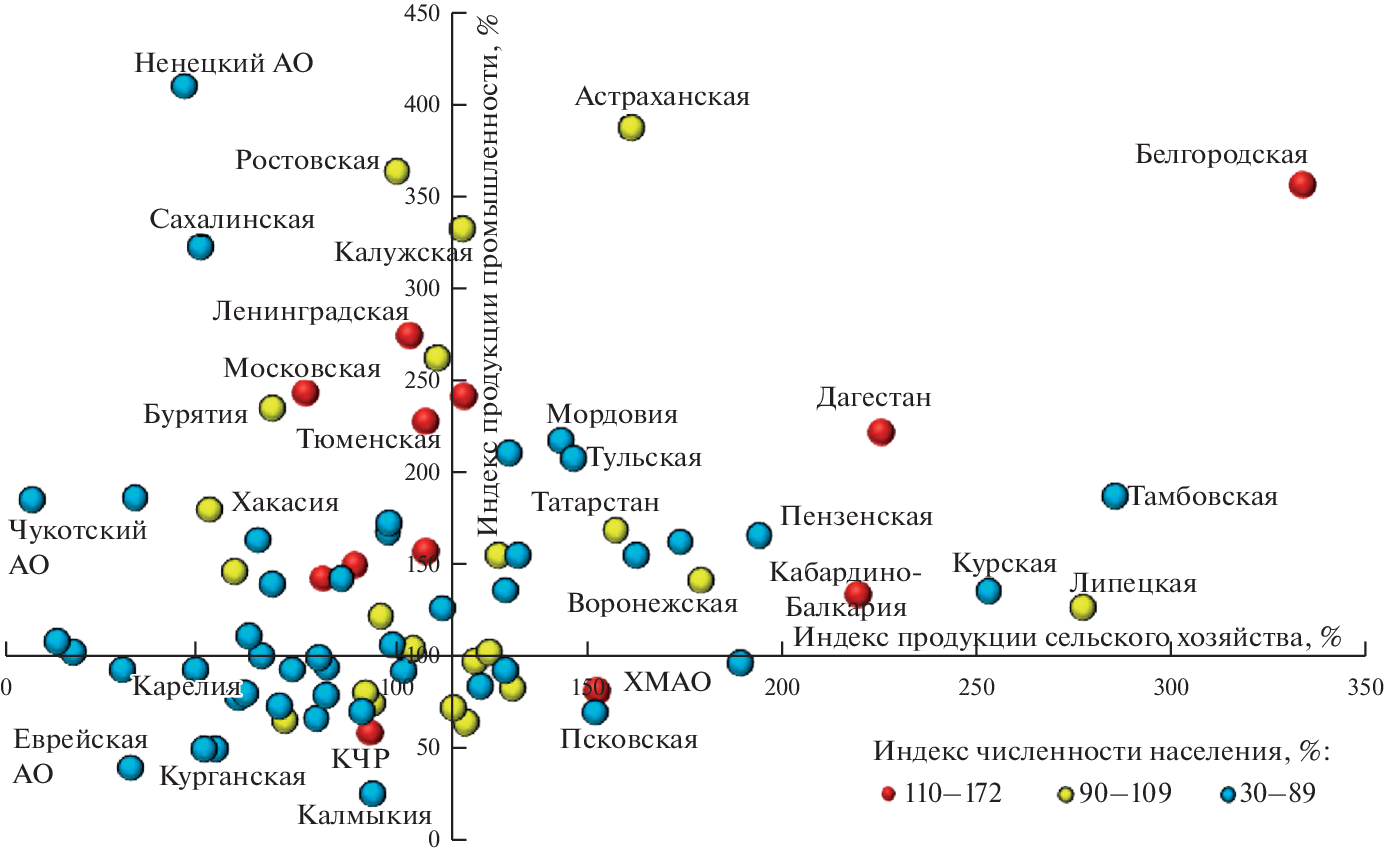 Региональная динамика промышленности, сельского хозяйства и населения в России в 1990–2020 гг.: геоэкологическая интерпретация