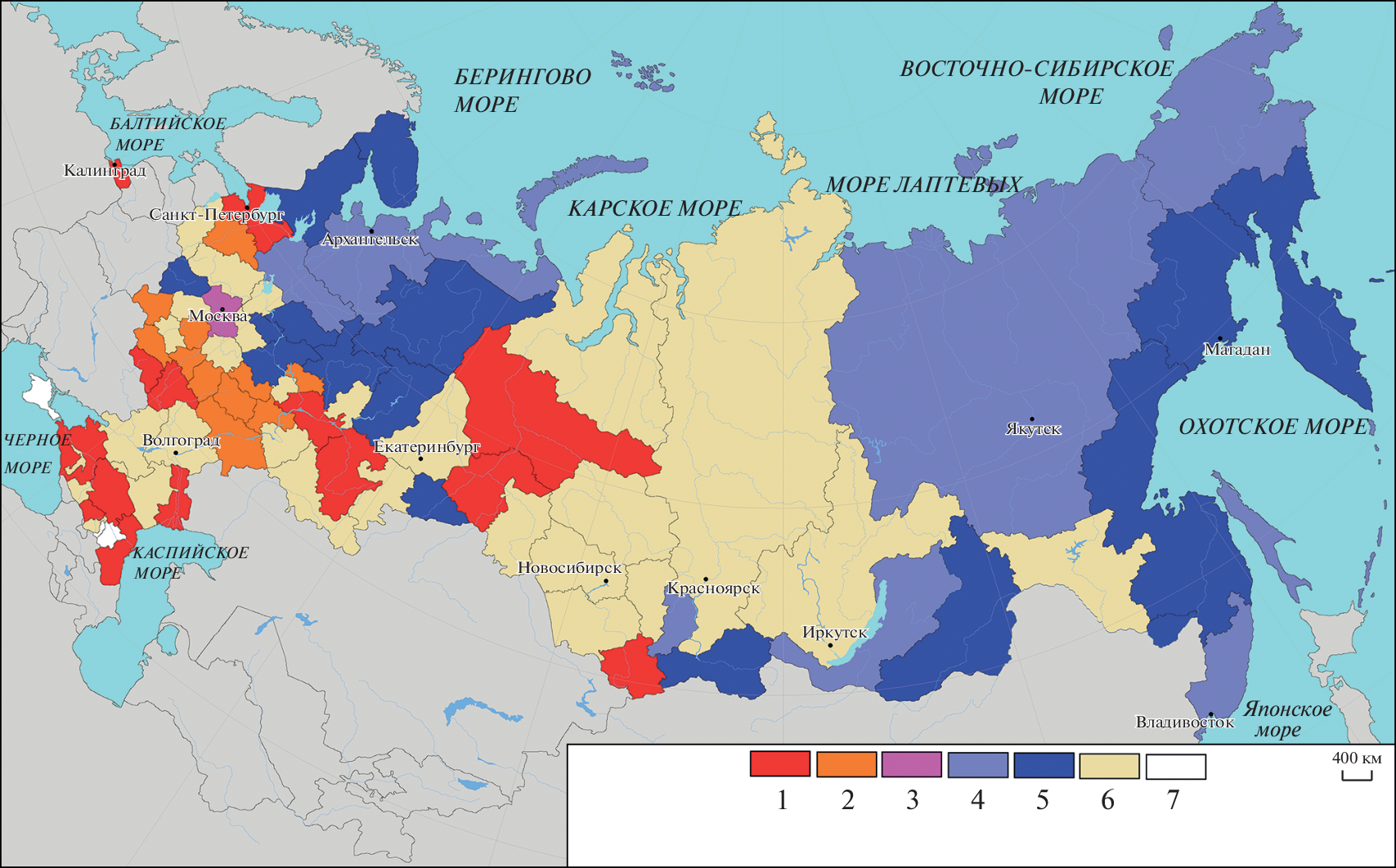 Проведена группировка регионов России по типу сопряженной динамики промышленности, сельского хозяйства и населения за 1990–2020 годы, косвенно отражающей и динамику интегральной антропогенной нагрузки на природу. Выявлены зоны, наиболее сильно пораженные трансформационной депрессией, которые охватывают практические все европейское Нечерноземье, юг Восточной Сибири и Дальний Восток. А значительный прирост нагрузок отмечается на Северном Кавказе, в российской Прибалтике, субширотном ареале регионов, протянувшемся от Брянской области до Башкортостана, а также Тюменской области. Усиление нагрузки произошло прежде всего в пределах степной и лесостепной зон, в наибольшей степени трансформированных антропогенной деятельностью. В целом “давление” на природу увеличивается на хорошо освоенной территории (примерно 1/10 часть территории страны, где проживает около трети населения), а сокращается – на обширной слабоосвоенной территории (около половины территории и 1/6 населения России). Новый экологически неблагоприятный тренд в динамике нагрузок на природу – их относительный сдвиг в приморские регионы, на уязвимые к воздействиям и дефицитные в стране рекреационно привлекательные побережья атлантических морей, а также Каспийского моря. Установлено, что ухудшение экологической обстановки в регионах сильного роста нагрузок более вероятно, чем ее улучшение в регионах-лидерах их спада.