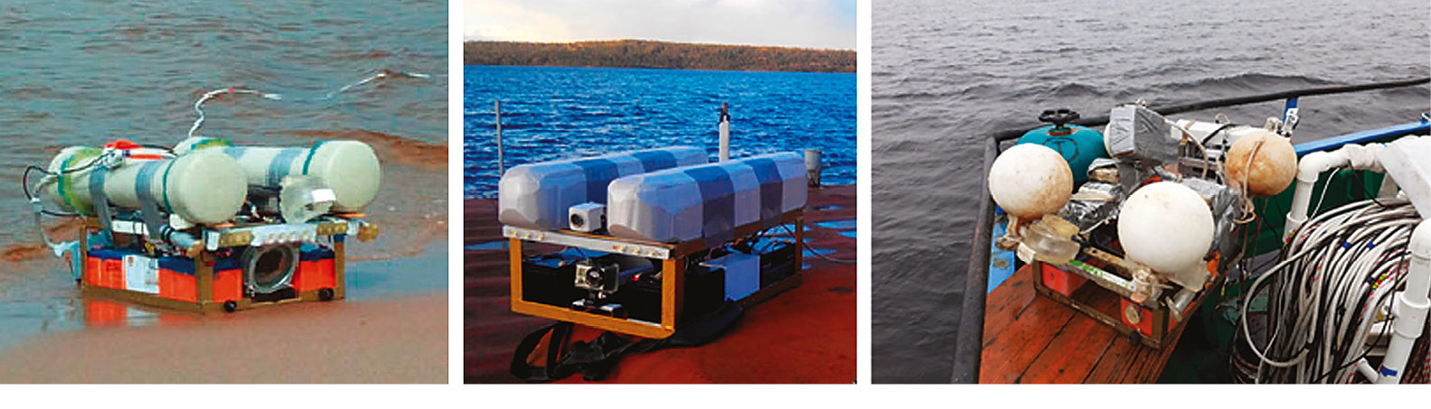 Рис. 2. Телеуправляемый необитаемый подводный аппарат “Limnoscout-230” в различных модификациях 2018–2020 гг.