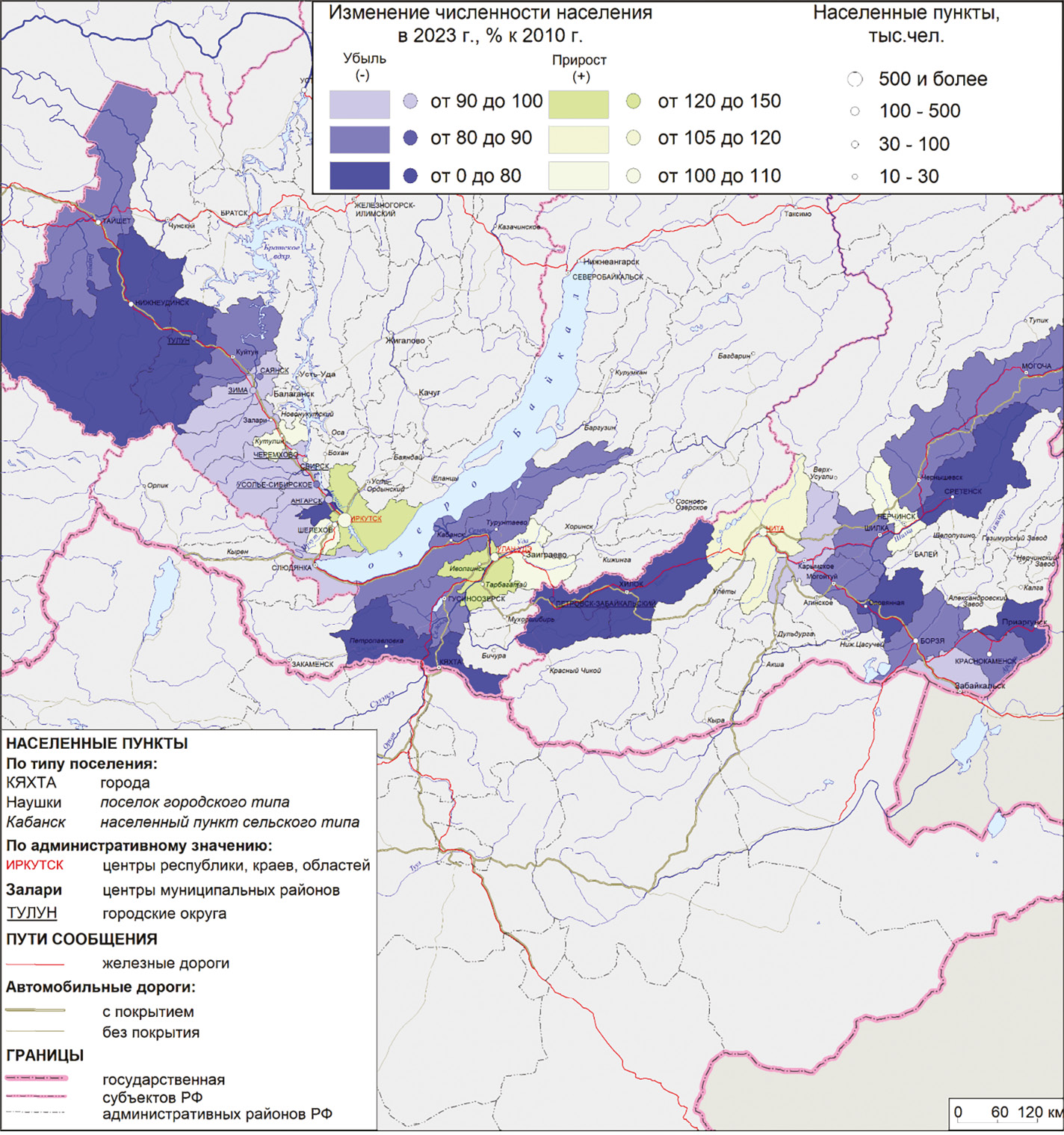 Как следует из обзора литературных источников, проблематика взаимодействия расселения, динамики и миграции населения для Байкальской Сибири выявлена в целом, однако остается исследовательская ниша на нескольких территориальных уровнях: район — городской округ; городские агломерации — периферия региона; примагистральные — внемагистральные пространства.