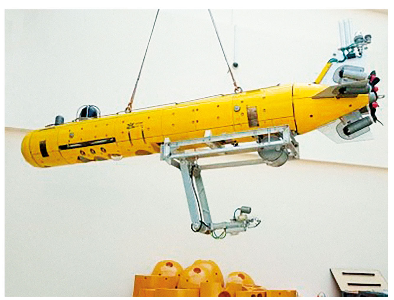 На основе разработанных методов синтезированы системы управления НПА, позволяющие точно идентифицировать подводные объекты и выполнять с ними манипуляционные работы в автоматическом режиме. Для упрощения внедрения в реальные образцы НПА предложенные системы были реализованы в виде программно-аппаратных средств. Работоспособность и высокое качество работы отдельных элементов этих систем были подтверждены результатами численного и полунатурного моделирования, а также натурных морских испытаний. Ожидается, что использование созданных разработок позволит не только добиться качественного решения существующих на сегодняшний день манипуляционных задач в автономном режиме, но и значительно расширить круг работ, выполняемых НПА. Эти разработки легли в основу создания в ИПМТ ДВО РАН экспериментальных образцов подводного ММ [20] и СТЗ, которыми оснащается автономный НПА ММТ-3500 [21] (см. рис. 6). Дальнейшие исследования будут направлены на проведение полномасштабных морских экспериментов.