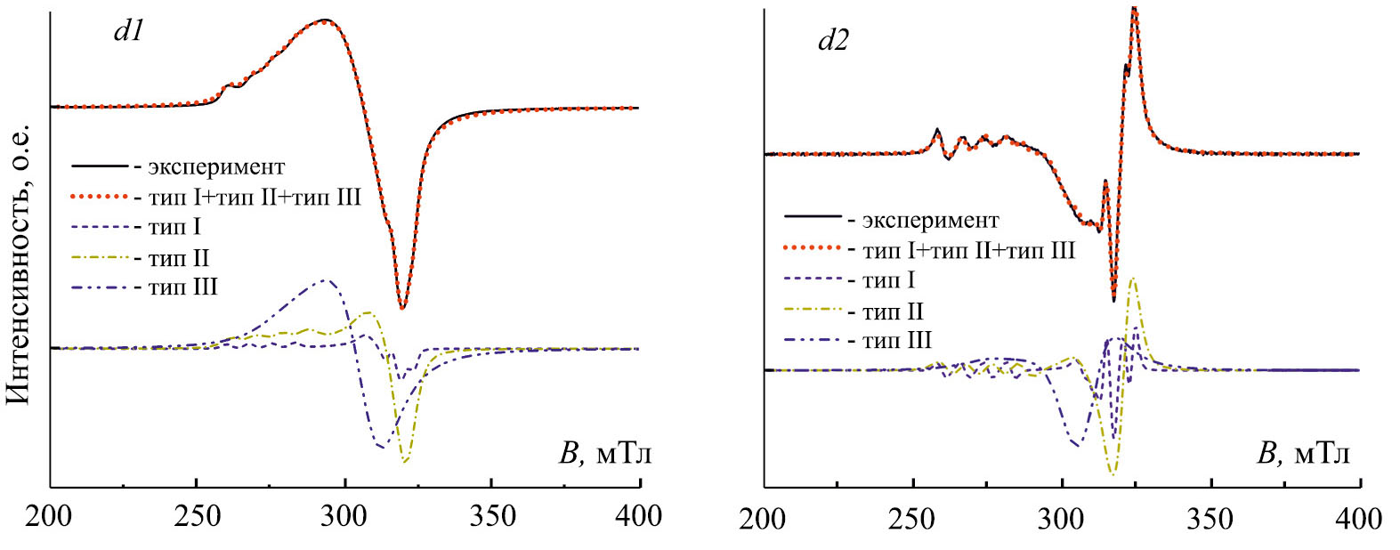 Компьютерный анализ спектров выполнили с помощью программного пакета EasySpin, написанного на языке MATLAB.