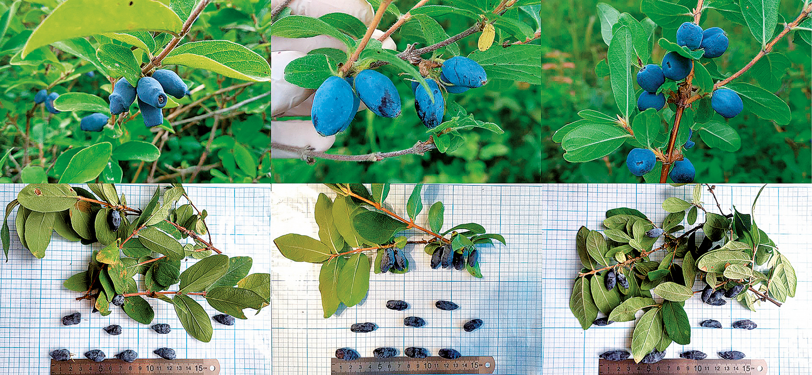 Рис. 3. Полиморфизм жимолости камчатской на примере отобранных образцов из различных районов произрастания в дикой природе.