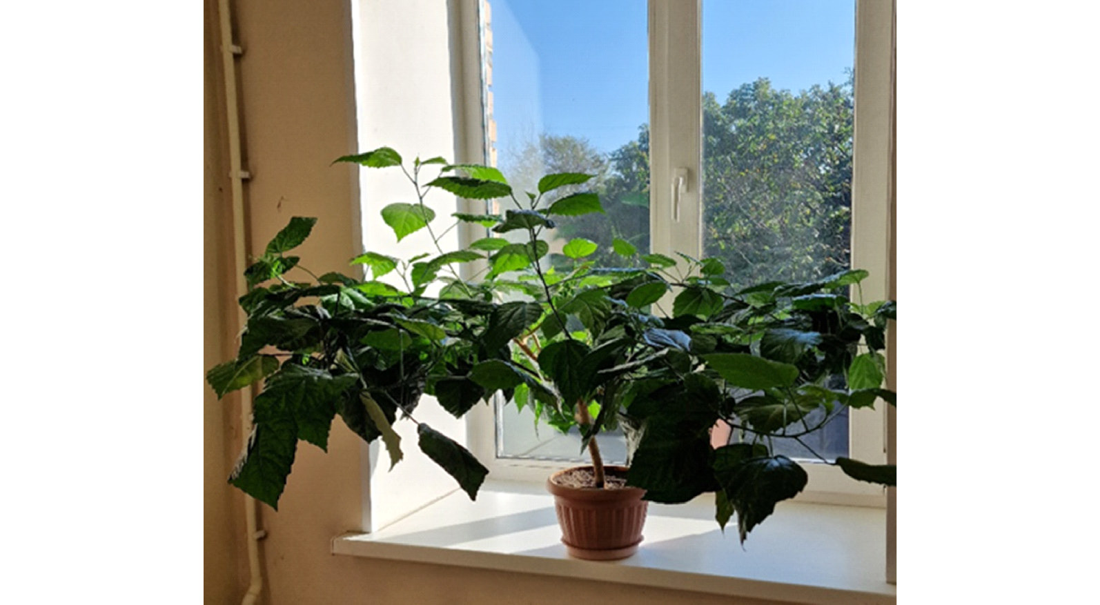 Для изучения звукового отклика растений на внешние воздействия было выбрано растение роза китайская (Rosa chinensis) (рис. 1), имеющее листья достаточно крупного размера, что важно для плотного контакта с датчиками. Растение выращивалось в цветочном горшке в почве при дневном солнечном освещении и комнатной температуре, полив осуществлялся 2 раза в неделю.